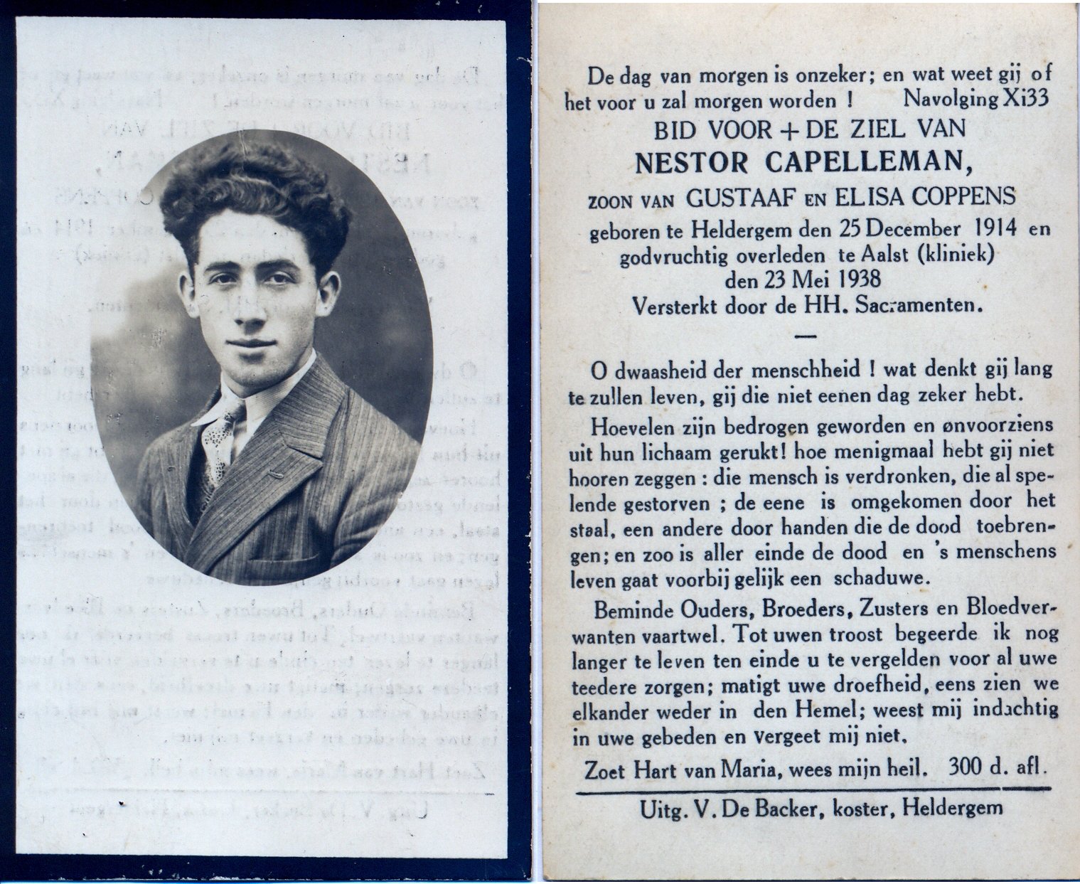 | Capelleman Nestor | Heldergem | 25/12/1914 | Aalst | 23/05/1938 | |
