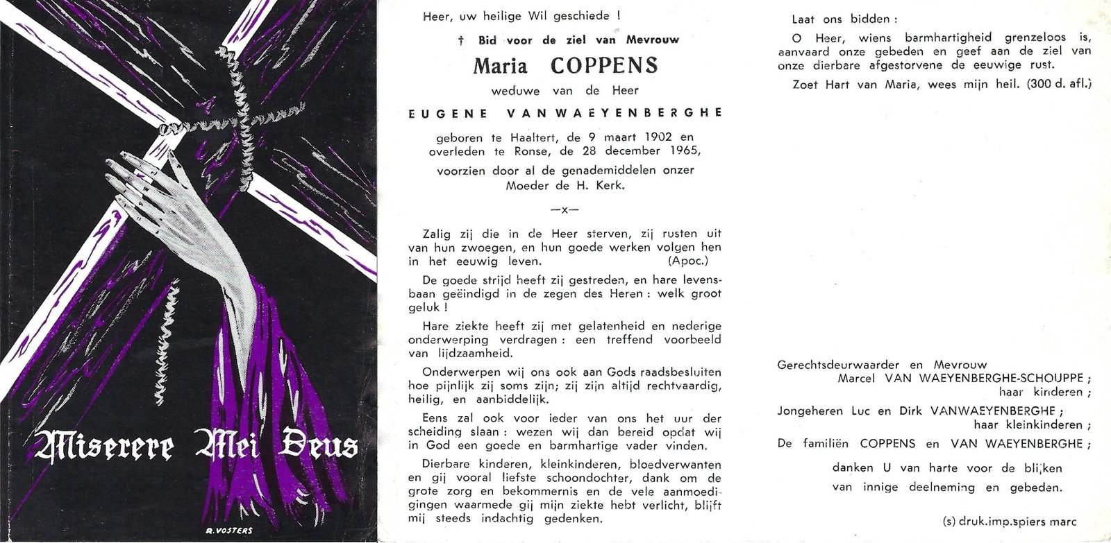 | Coppens Maria | Van Waeyenberghe Eugene | Haaltert | 09/03/1902 | Ronse | 28/12/1965 |