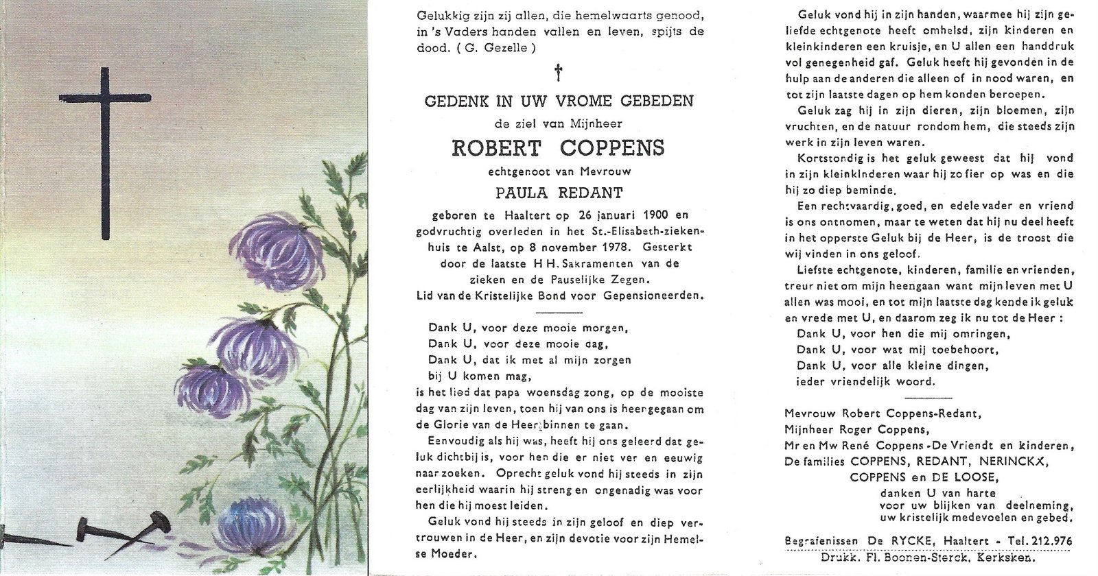 | Coppens Robert | Redant Paula | Haaltert | 26/01/1900 | Aalst | 08/11/1978 |