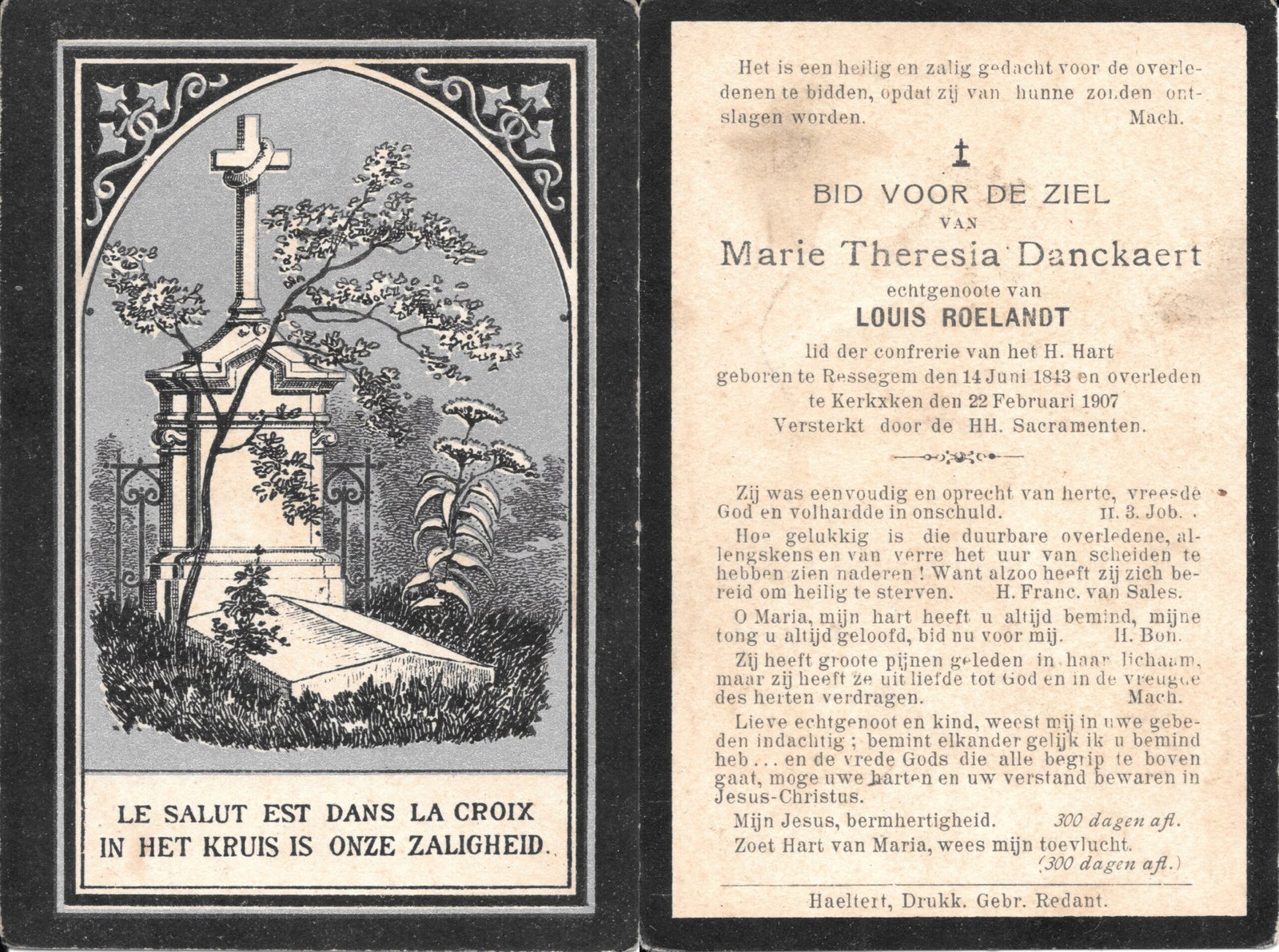 | Danckaert Maria-Thérèsia | Roelandt Louis | Ressegem | 11/06/1843 | Kerksken | 22/02/1907 |
