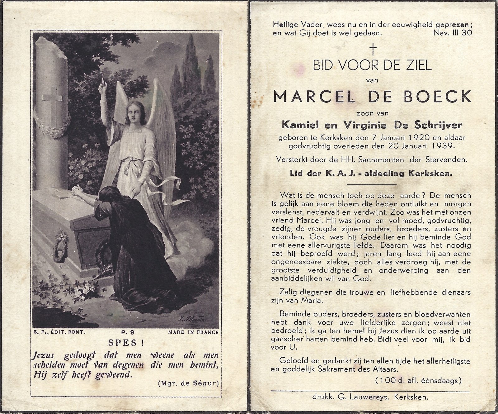 | De Boeck Marcel | Kerksken | 07/01/1920 | Kerksken | 20/01/1939 | |