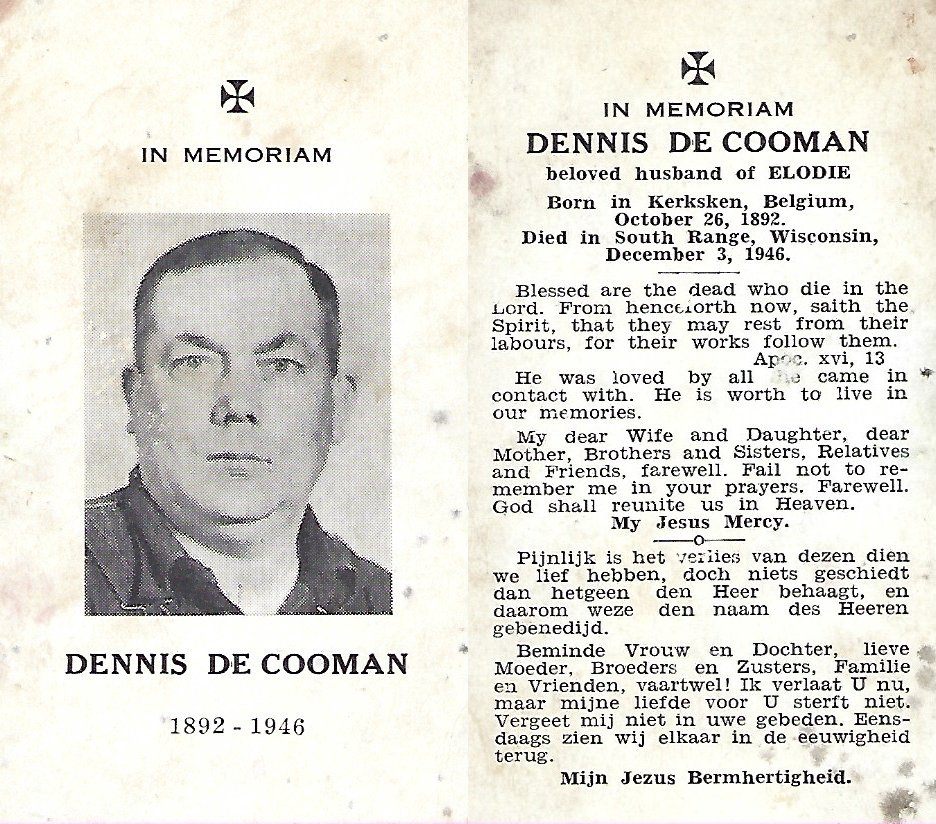 | De Cooman Denis | Kerksken | 26/10/1892 | Wisconsin | 03/12/1946 | |