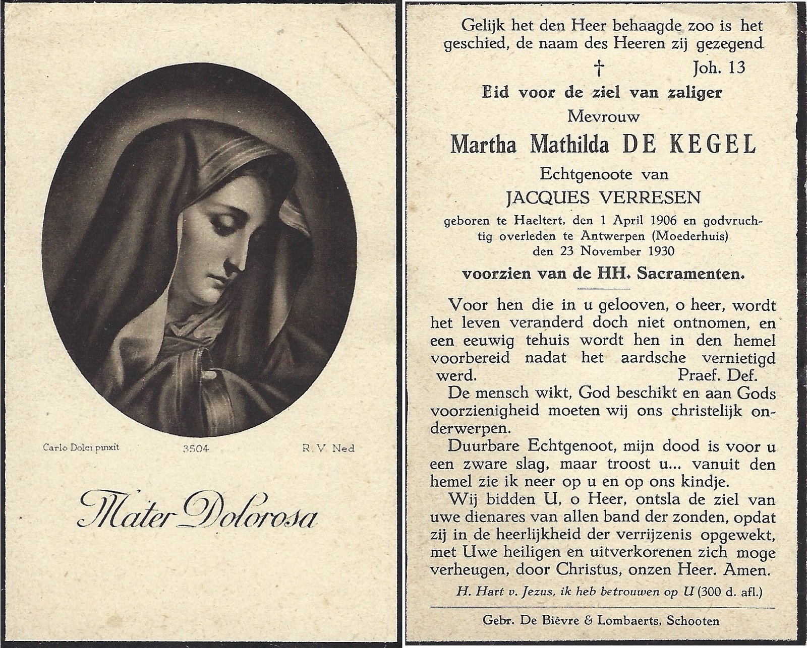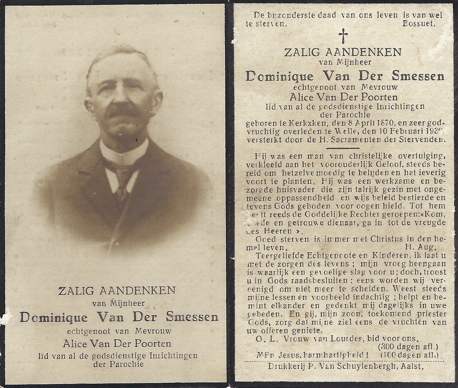 | Van Der Smessen Dominique | Van Der Poorten Alice | Kerksken | 08/04/1870 | Welle | 10/02/1930 |