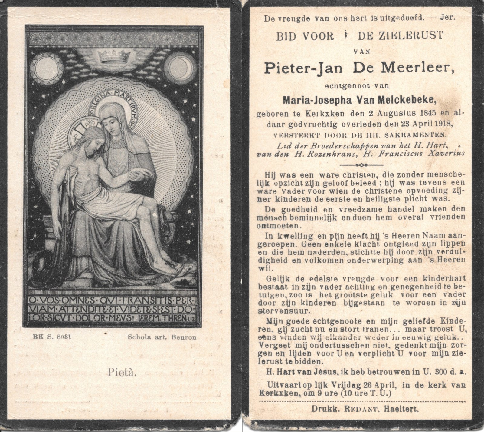 | Baetens Maria-Clemence | Van Melkebeke Gustaaf en Van Melkebeke Cyrille | Kerksken | 23/01/1885 | Kerksken | 04/06/1935 |
