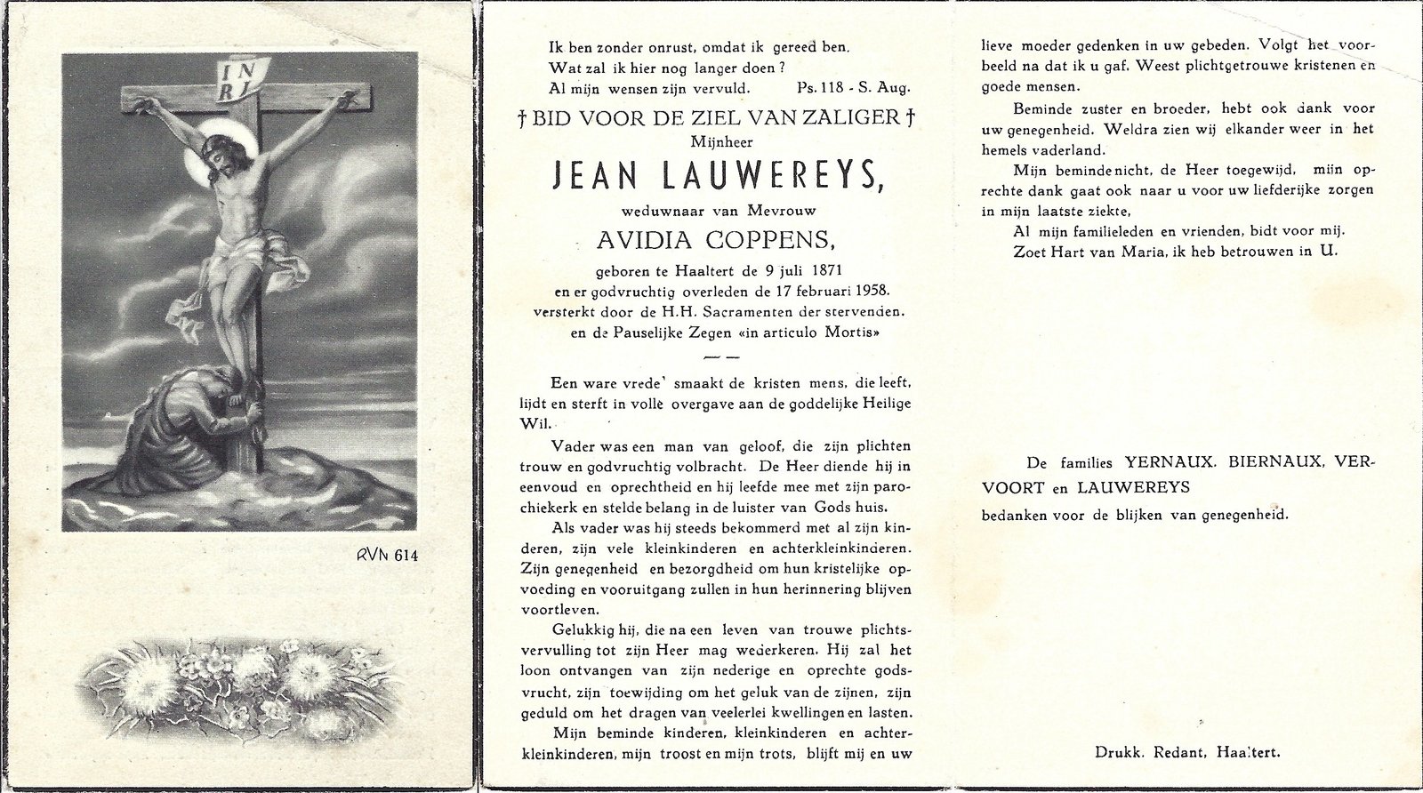 | Coppens Avidia | Lauwereys Jean | Haaltert | 14/11/1863 | Haaltert | 17/02/1930 |