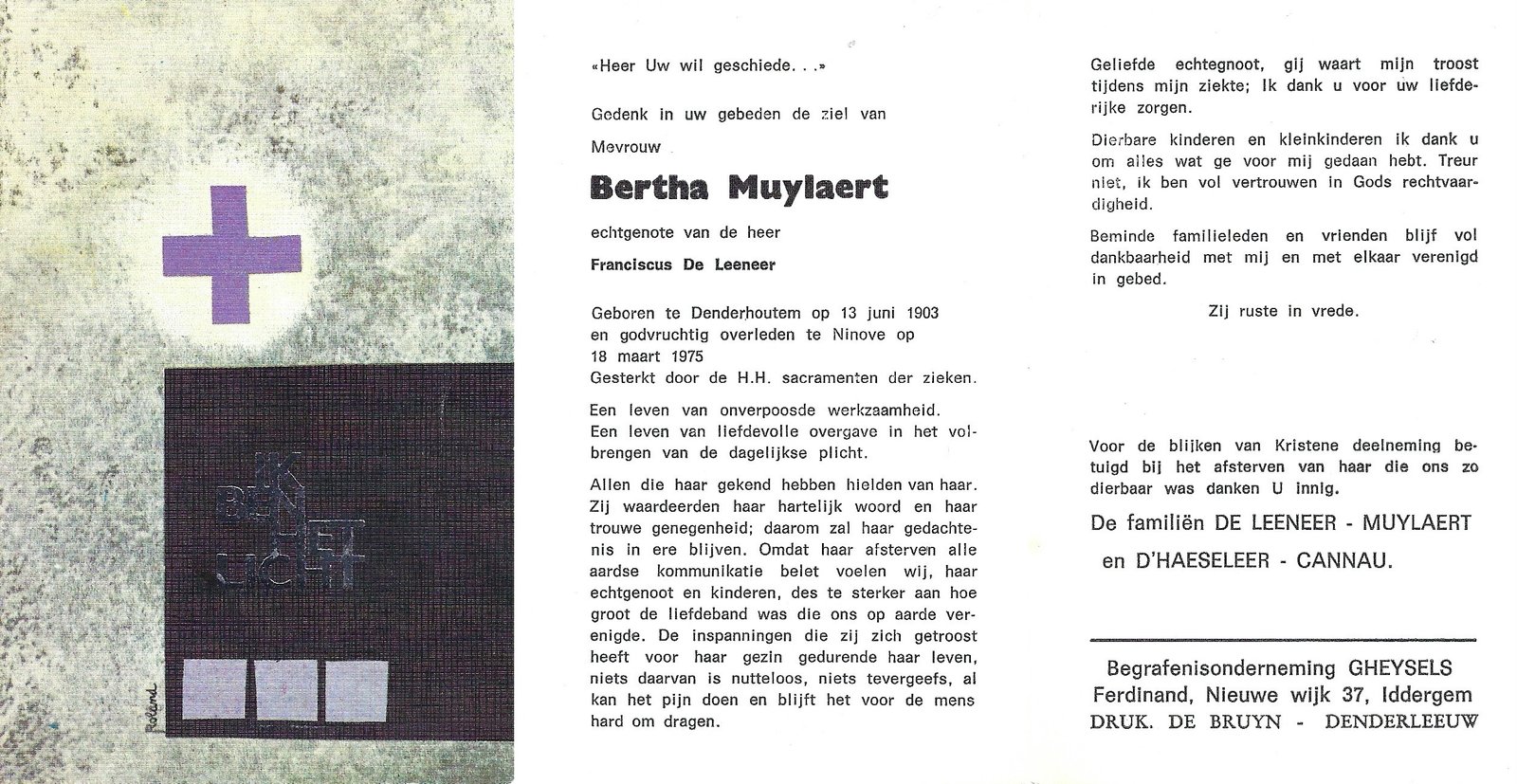 | Bogaert Alfons | Meganck Anna | Kerksken | 09/06/1897 | Haaltert | 24/05/1978 |