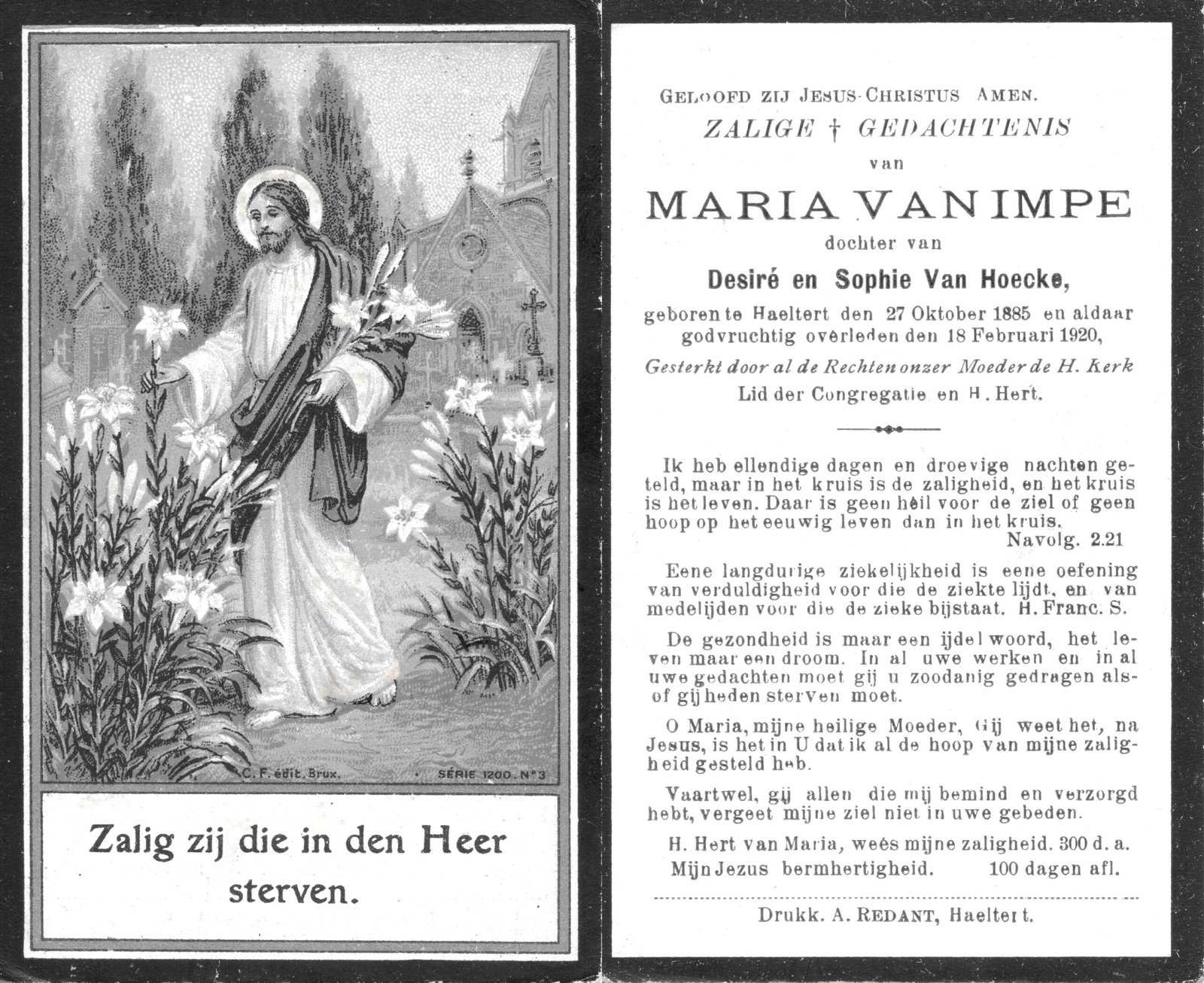 | Van Impe Maria | Haaltert | 27/10/1885 | Haaltert | 18/02/1920 | |