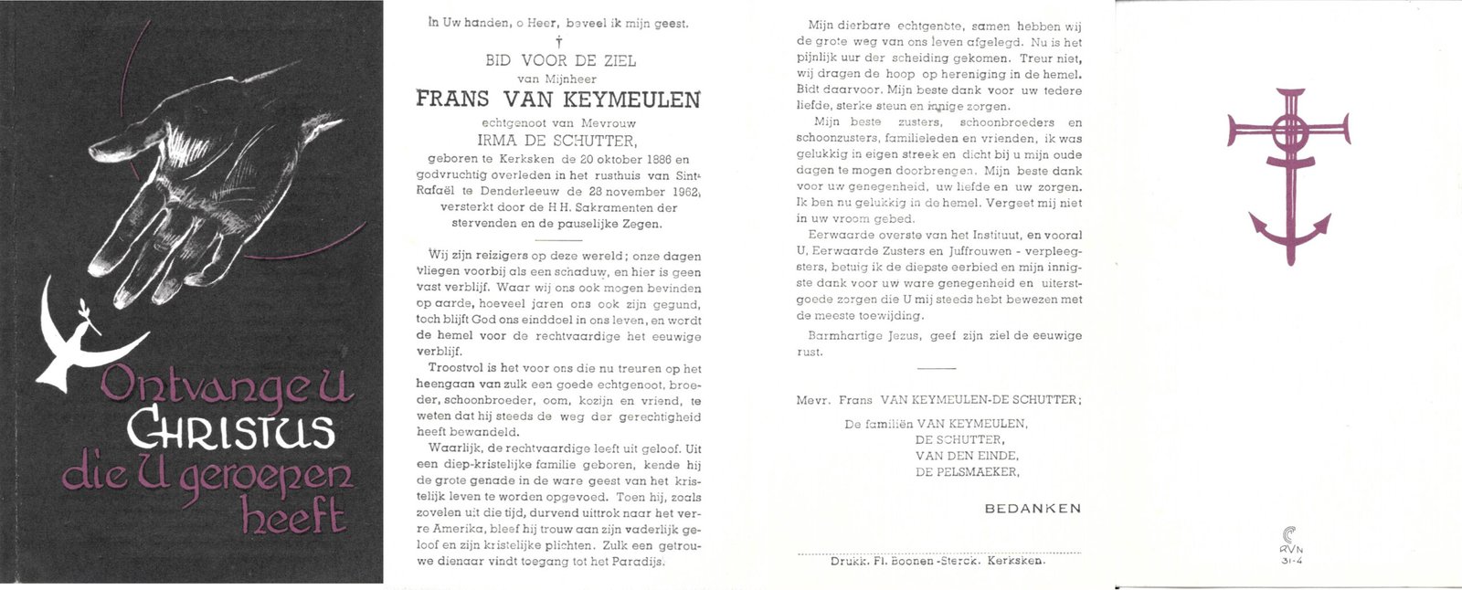 | Van Keymeulen Frans | De Schutter Irma | Kerksken | 20/10/1886 | Denderleeuw | 28/11/1962 |
