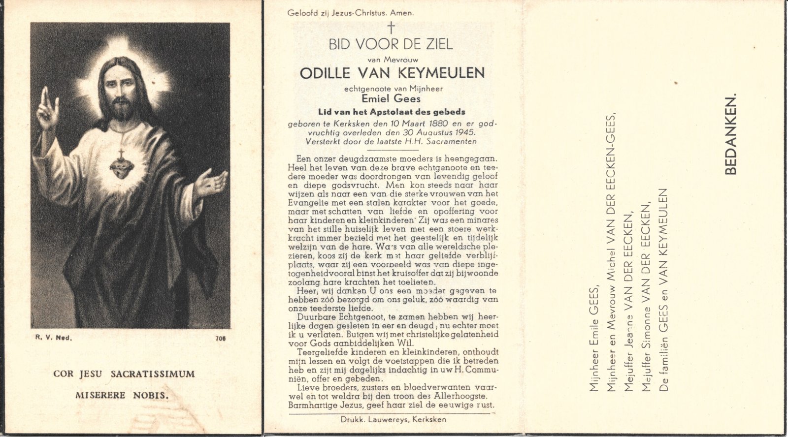 | Van Keymeulen Odille | Gees Emiel | Kerksken | 10/03/1880 | Kerksken | 30/08/1945 |