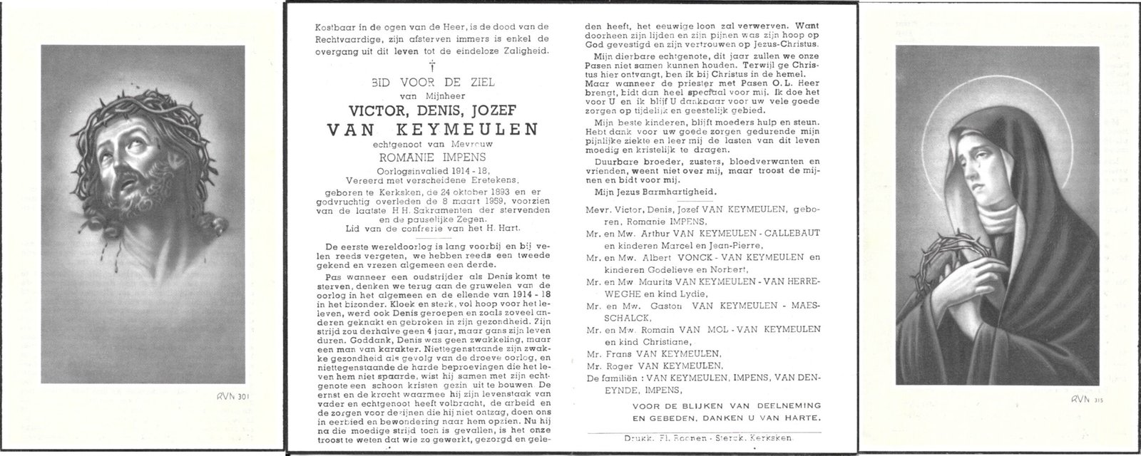 | Van Keymeulen Victor Denis Jozef | Impens Romanie | Kerksken | 24/10/1893 | Kerksken | 08/03/1959 |