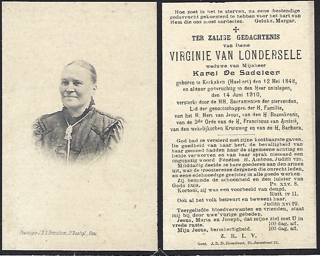 | Van Londersele Virginie | De Sadeleer Karel | Kerksken | 12/05/1848 | Kerksken | 14/06/1910 |