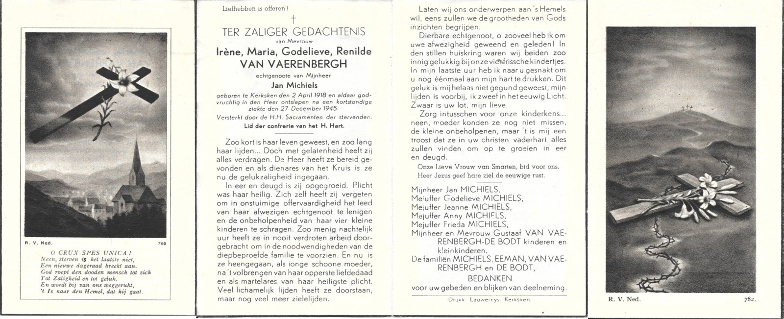 | Van Vaerenbergh Irène Maria Godelieve | Michiels Jan | Kerksken | 02/04/1918 | Kerksken | 27/12/1945 |