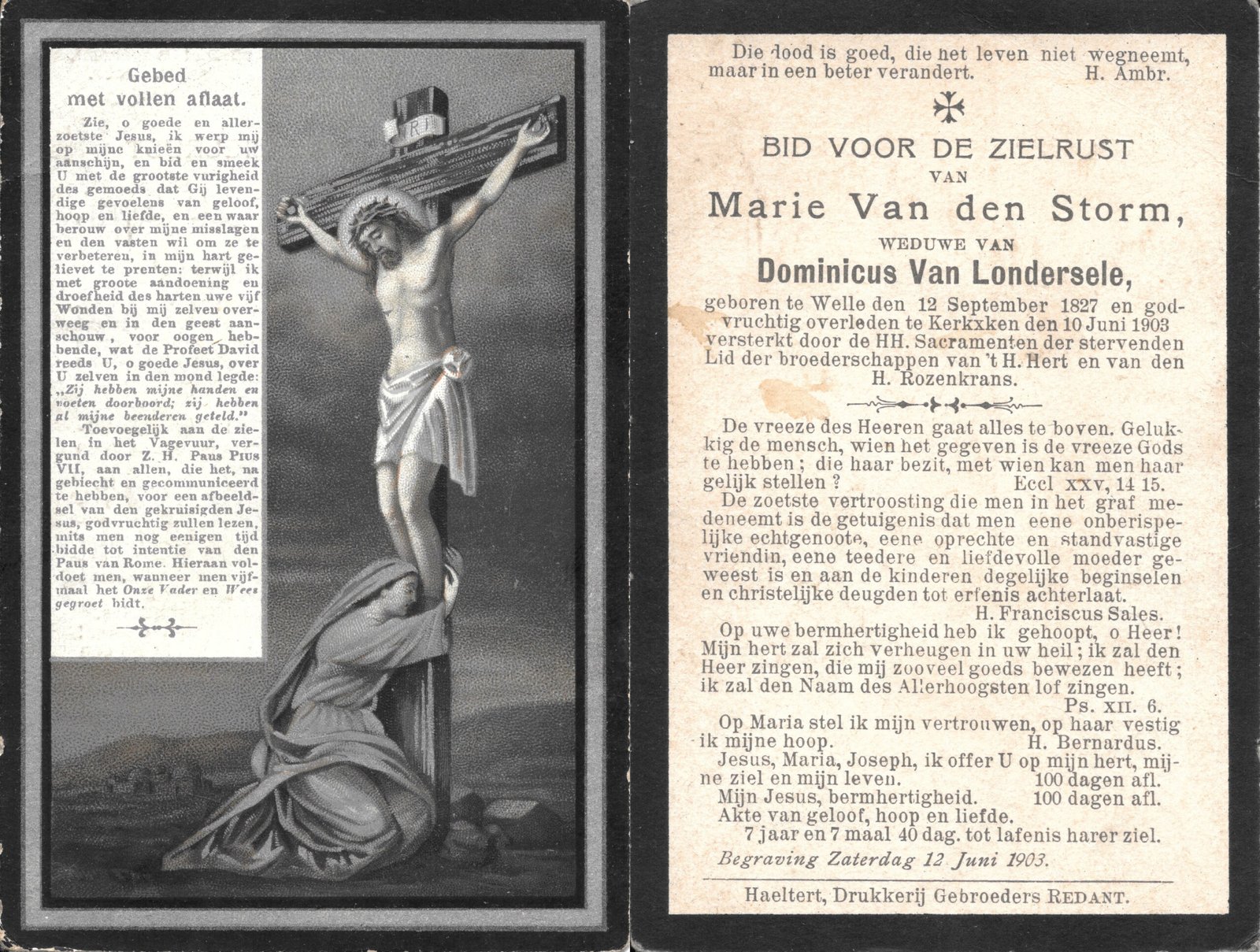 | Van den Storm Marie | Van Londersele Dominicus | Welle | 12/09/1827 | Kerksken | 10/06/1903 |
