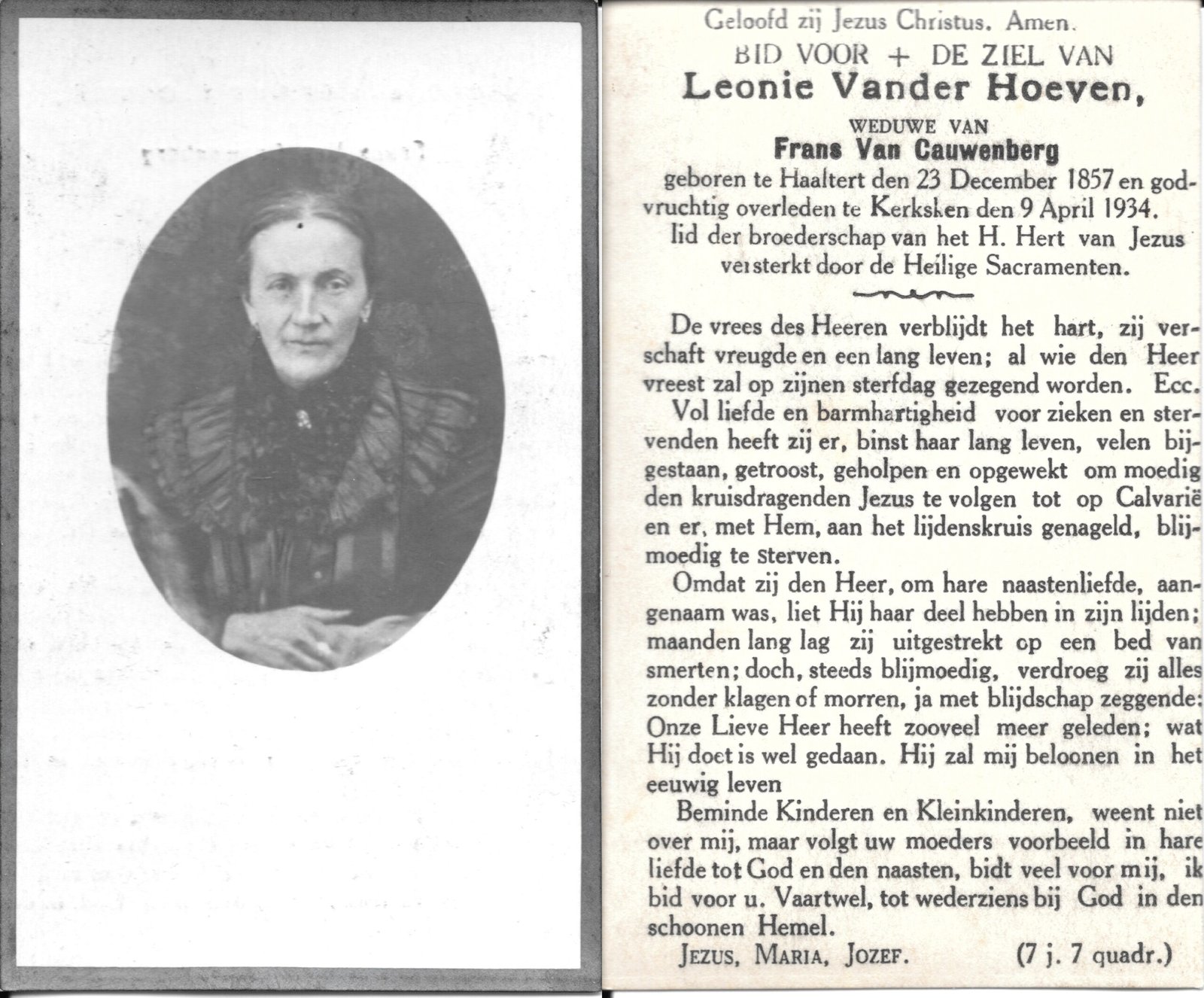 | Vander Hoeven Leonie | Van Cauwenberg Frans | Haaltert | 23/12/1857 | Kerksken | 09/04/1934 |