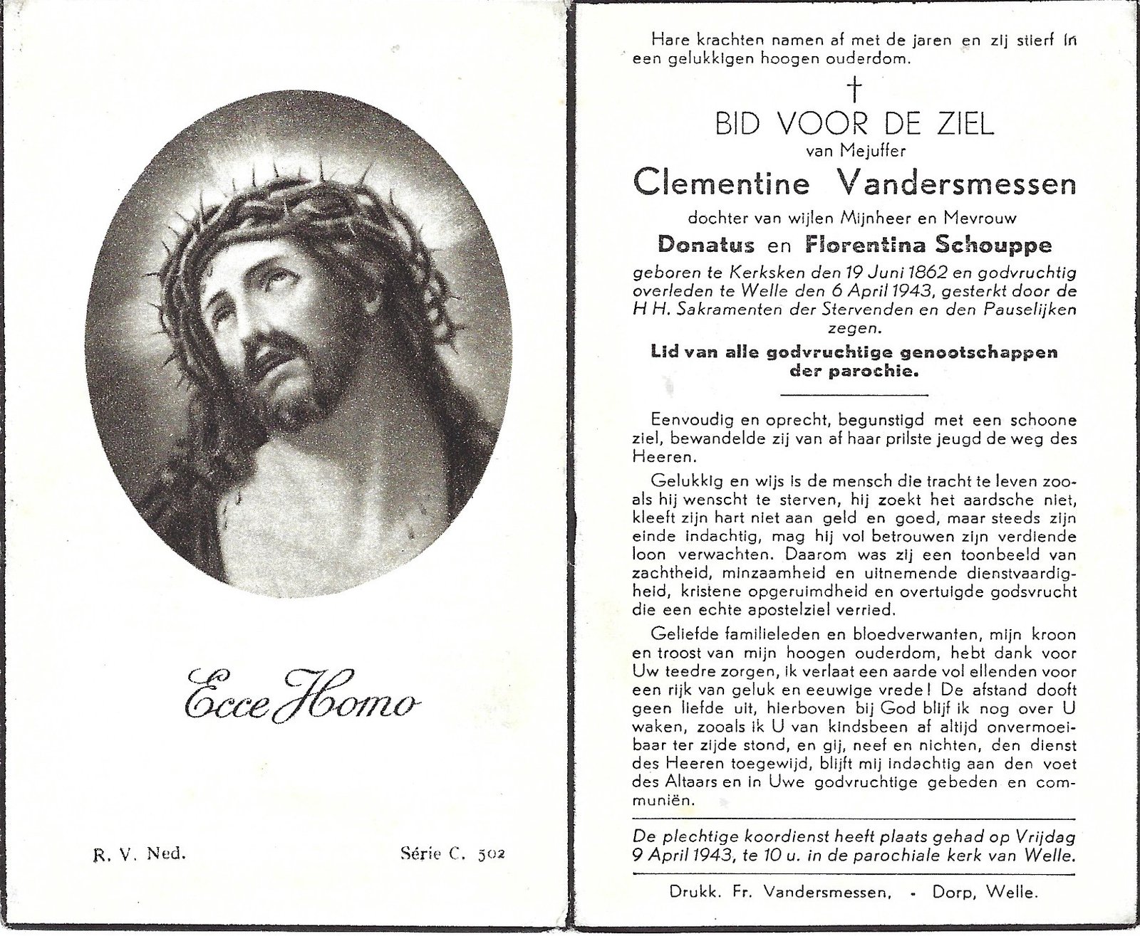 | Vandersmessen Clementine | Kerksken | 16/06/1862 | Welle | 06/04/1943 | |