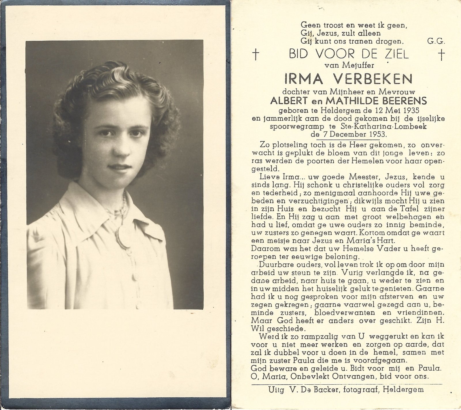 | Verbeken Irma | Heldergem | 12/05/1935 | Sint-Katherina-Lombeek | 07/12/1953 | |