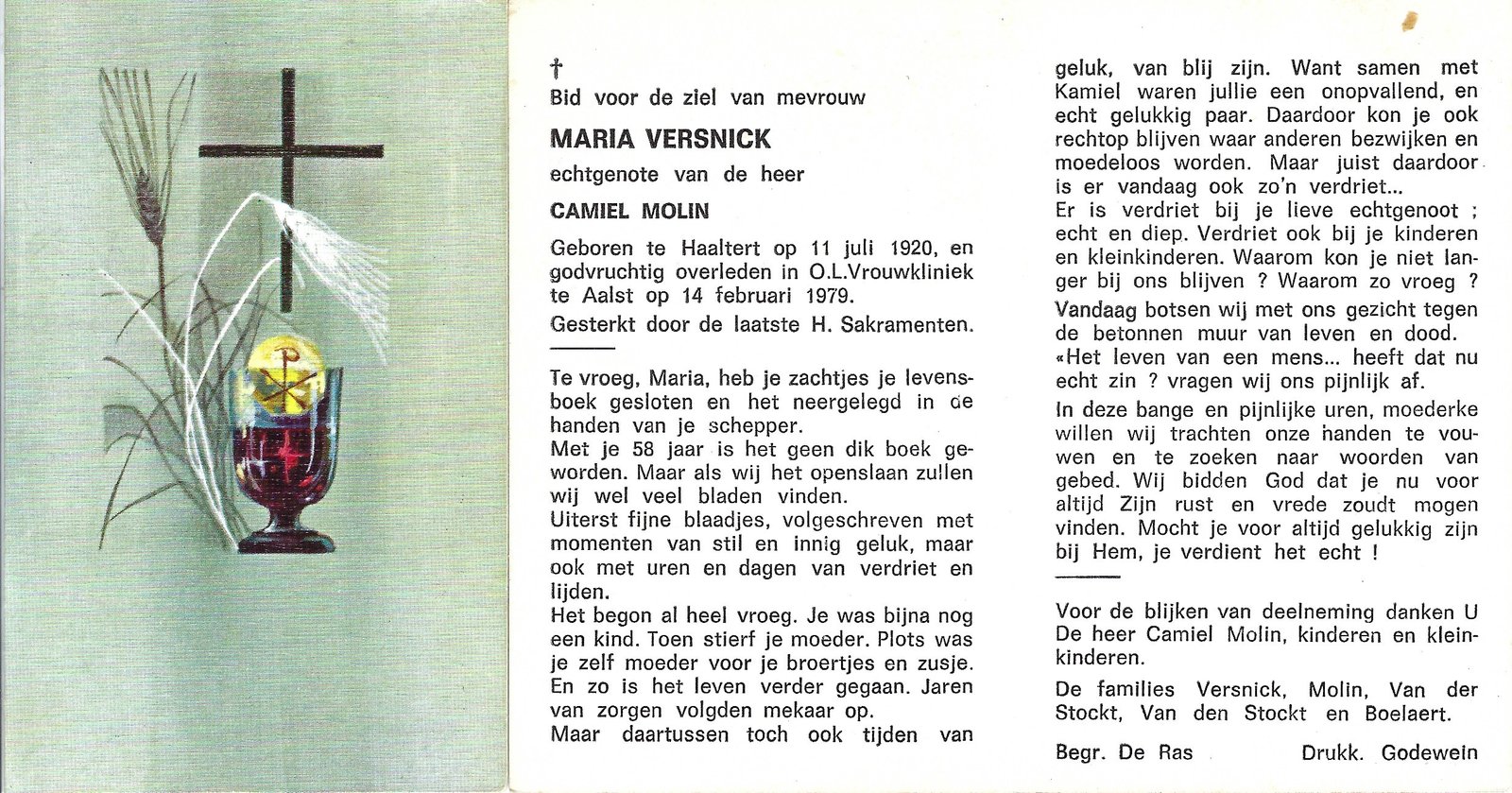 | Versnick Maria | Molin Camiel | Haaltert | 11/07/1920 | Aalst | 14/02/1979 |