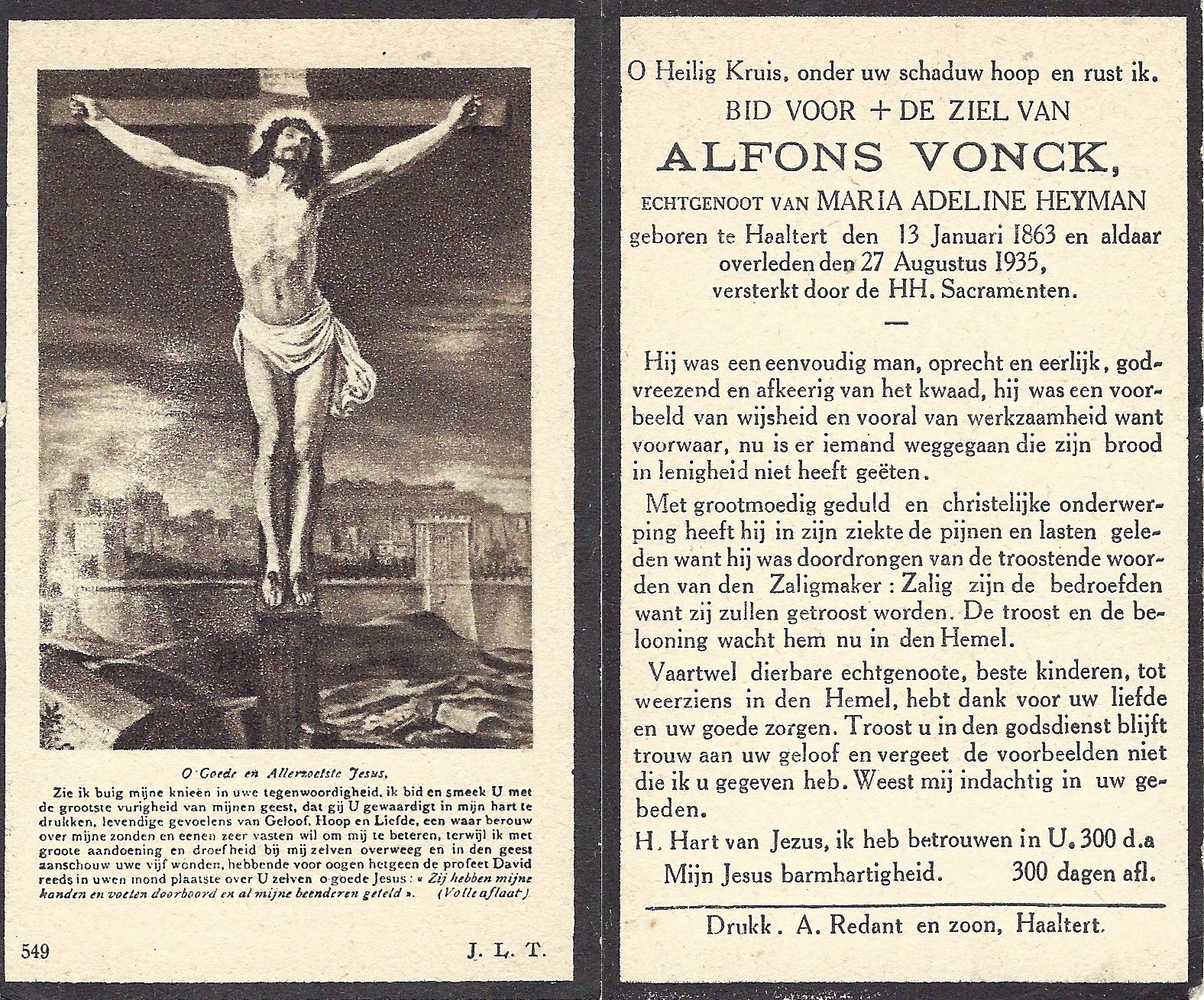 | Vonck Alfons | Heyman Maria | Haaltert | 13/01/1863 | Haaltert | 27/08/1935 |