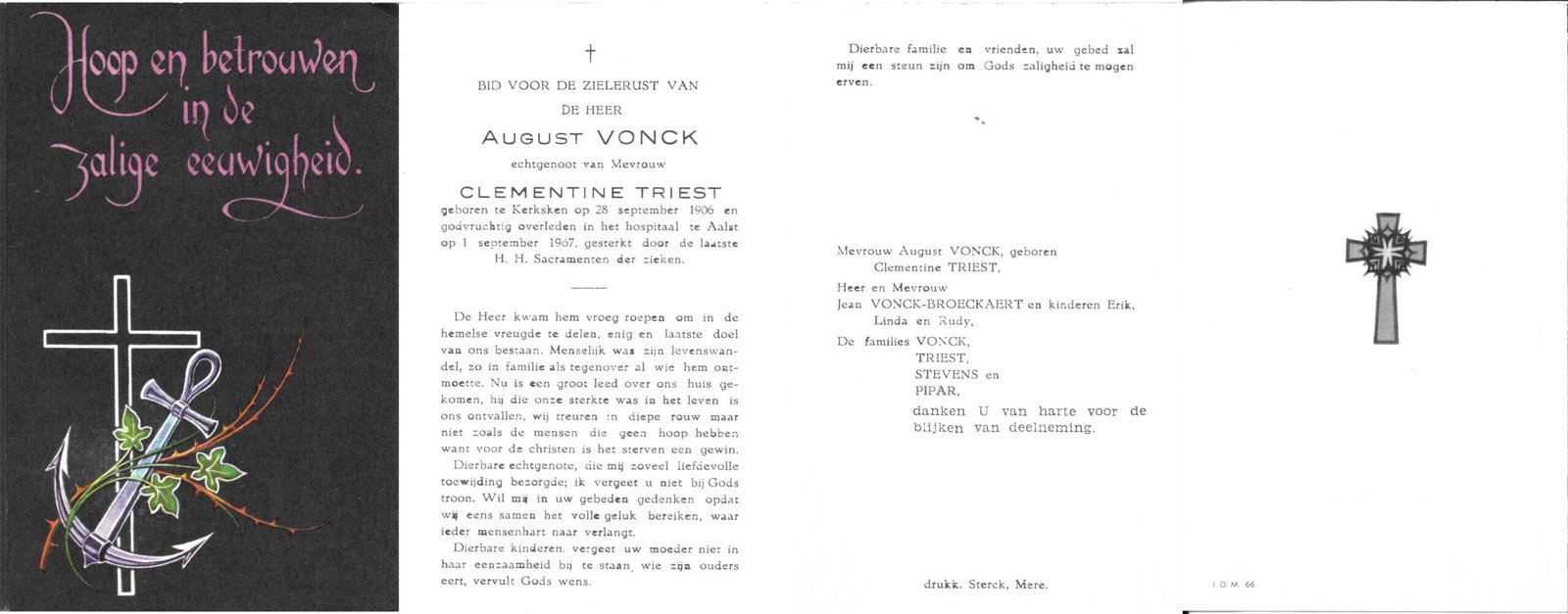 | Vonck August | Triest Clementine | Kerksken | 28/09/1906 | Kerksken | 01/09/1967 |