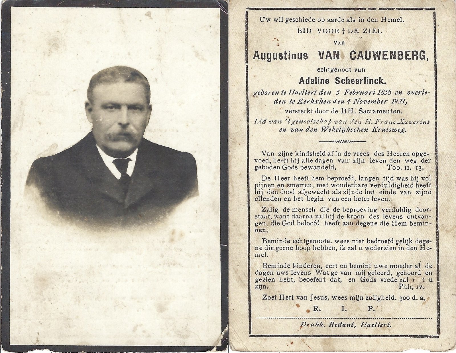 Van Cauwenbergh AugustinusScheerlinck AdelineHaaltert05/02/1856Kerksken04/11/1927