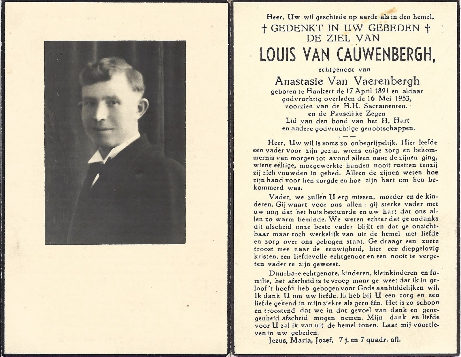 Van Cauwenbergh LouisVan Vaerenbergh AnastasieHaaltert17/04/1891Haaltert16/05/1953