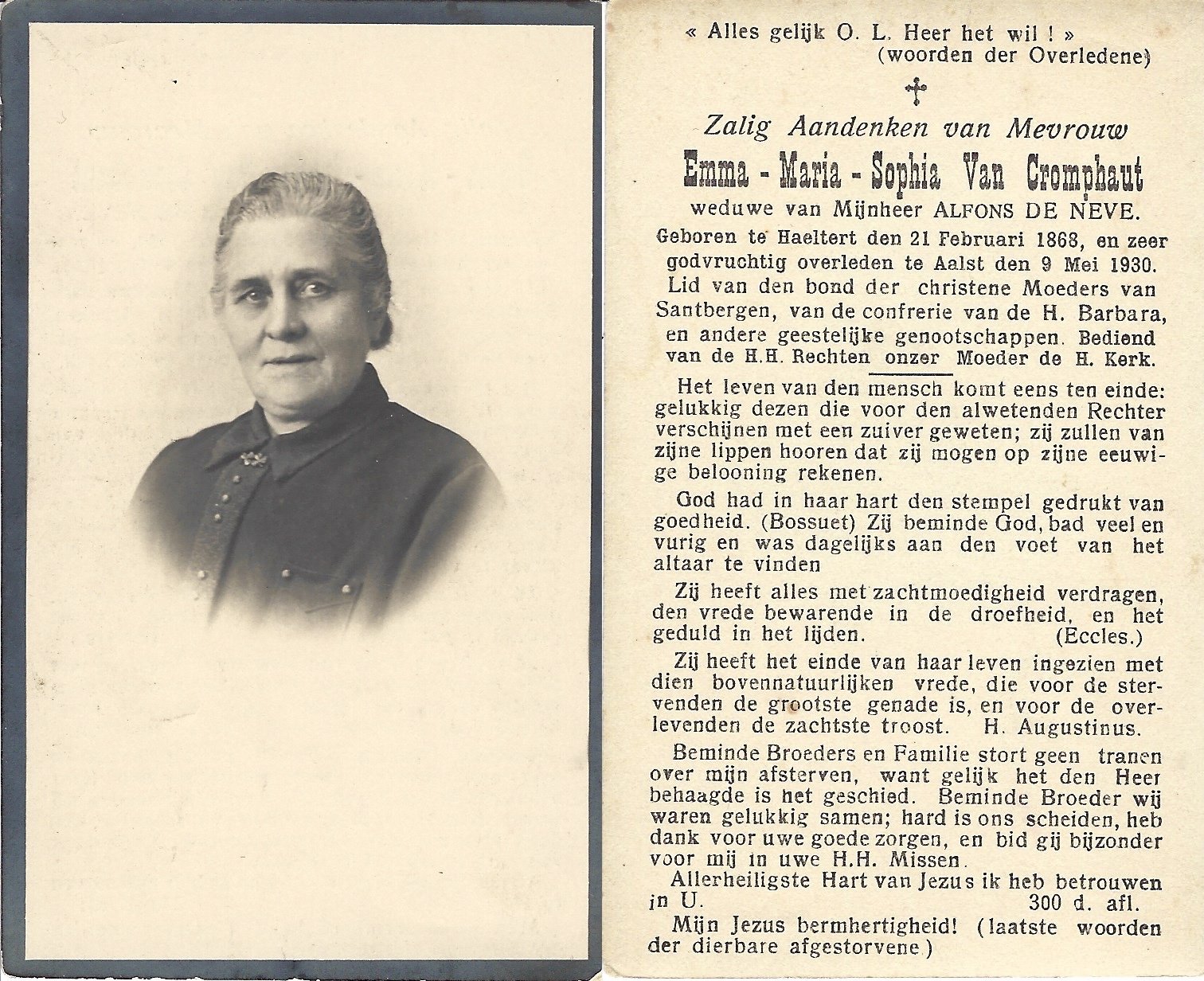 Van Cromphaut Emma Maria SophiaDe Neve AlfonsHaaltert21/02/1868Aalst09/05/1930
