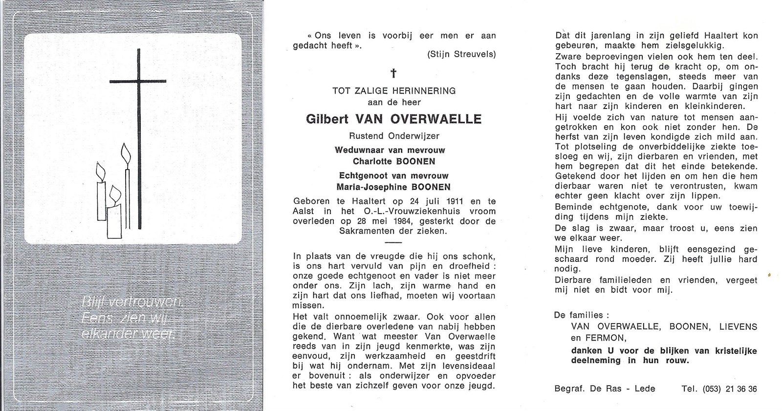 Van Overwaelle GilbertBoonen Charlotte en Boonen MariaHaaltert24/07/1911Aalst28/05/1984