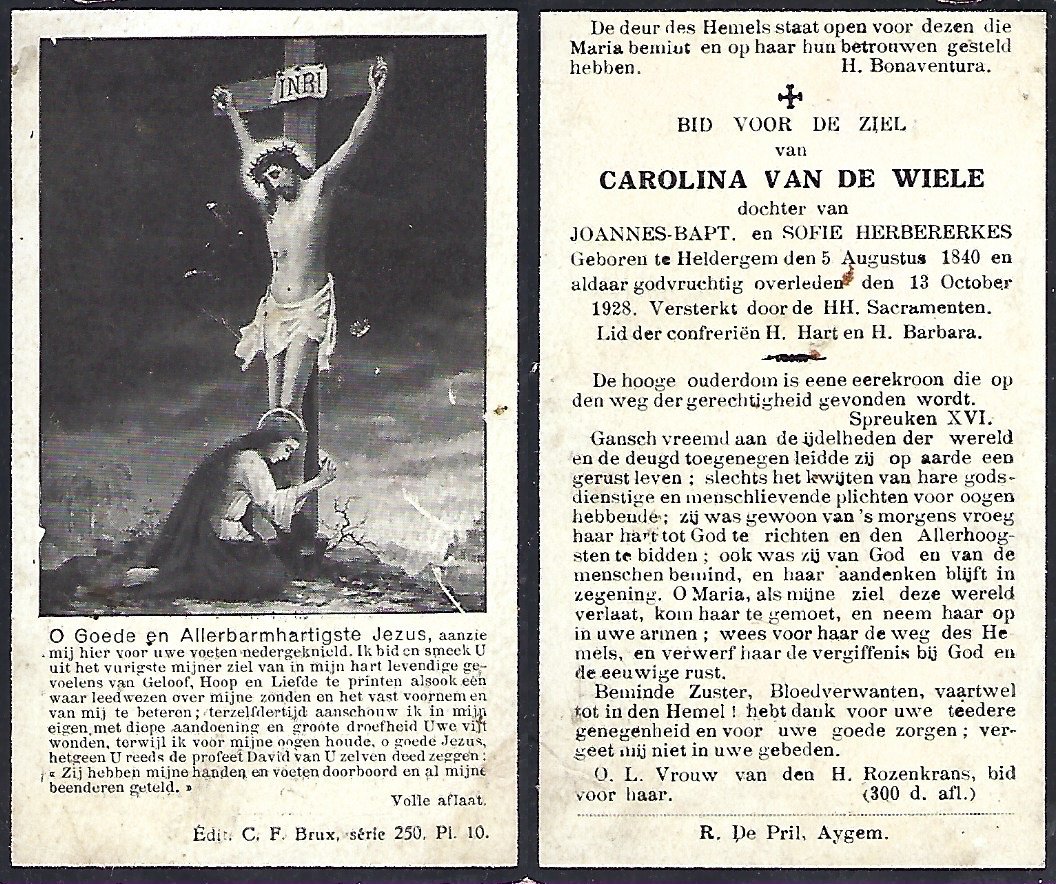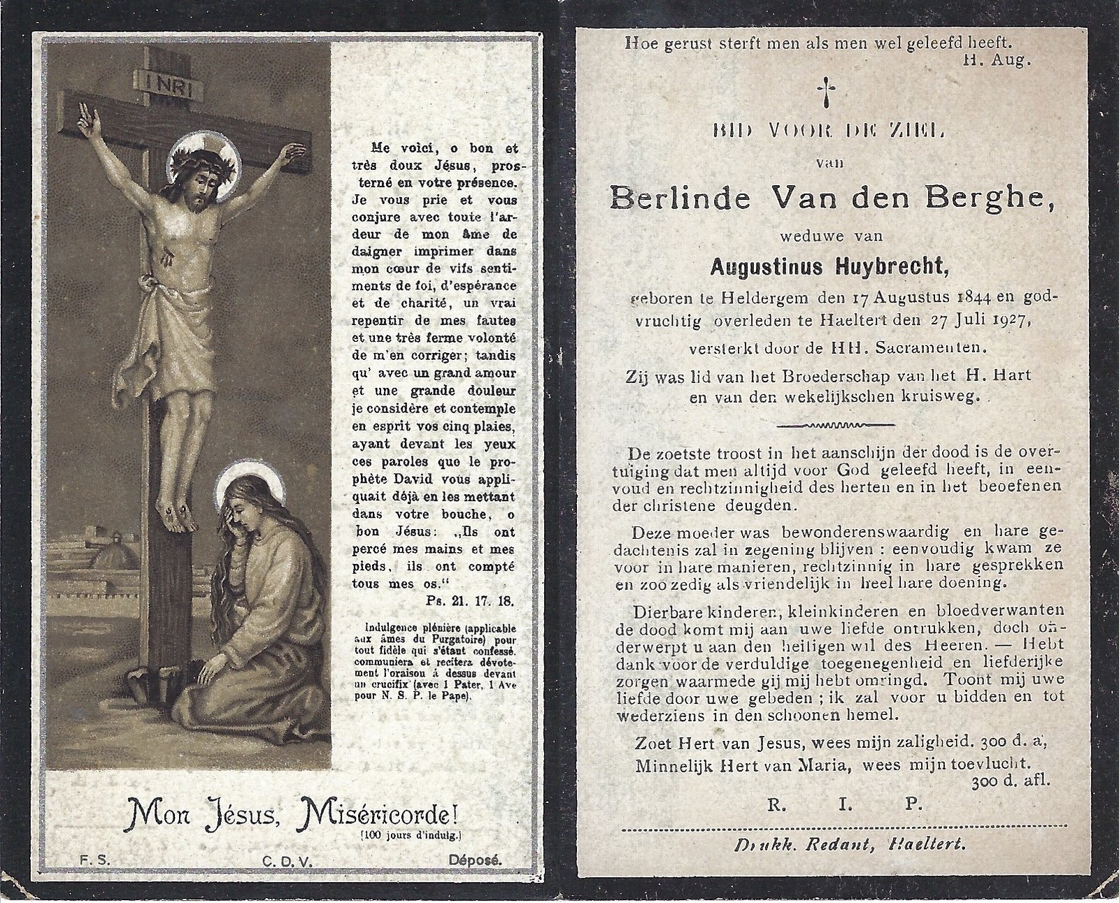 Van den Berghe BerlindeHuybrecht AugustinusHeldergem17/08/1844Haaltert27/07/1927