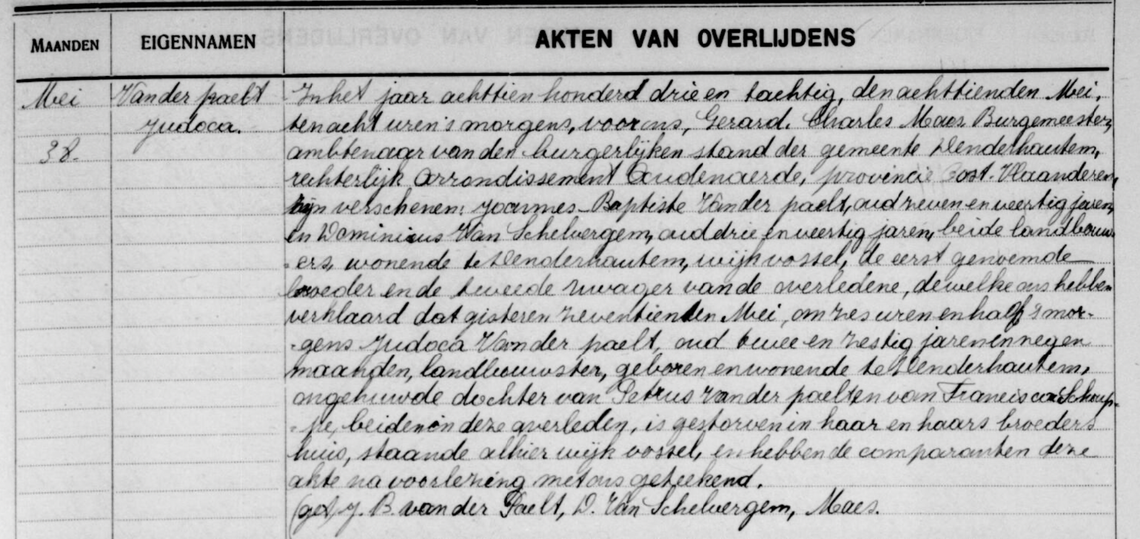 Van Oudenhove Philomena BernardinaMaes Gerard KarelDenderhoutem29/06/1842Denderhoutem28/05/1883