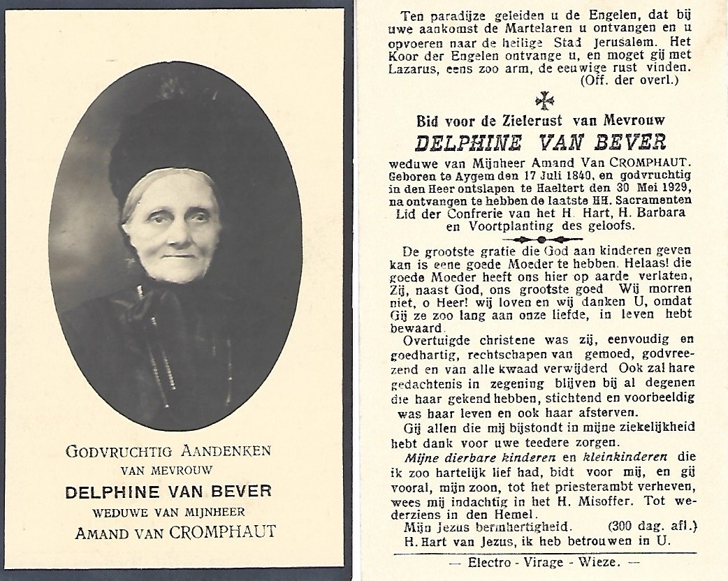 Van Bever DelphineVan Cromphaut AmandAaigem17/07/1840Haaltert30/05/1929