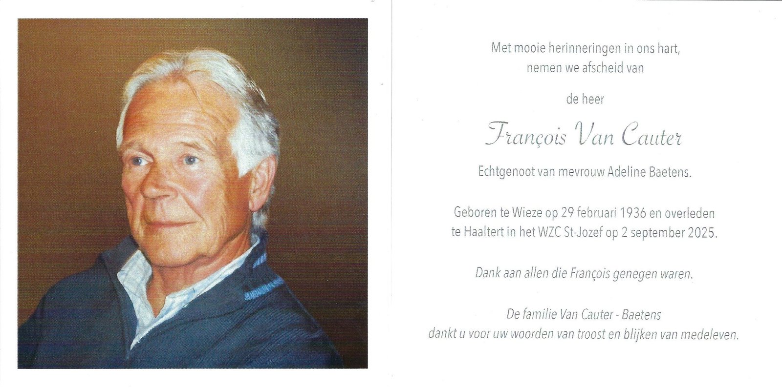 Van Cauter FrançoisBaetens AdelineWieze29/02/1936Haaltert02/09/2025