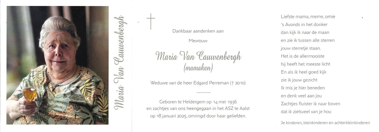 Van Cauwenbergh MariaPerreman EdgardHeldergem14/05/1936Aalst18/01/2025