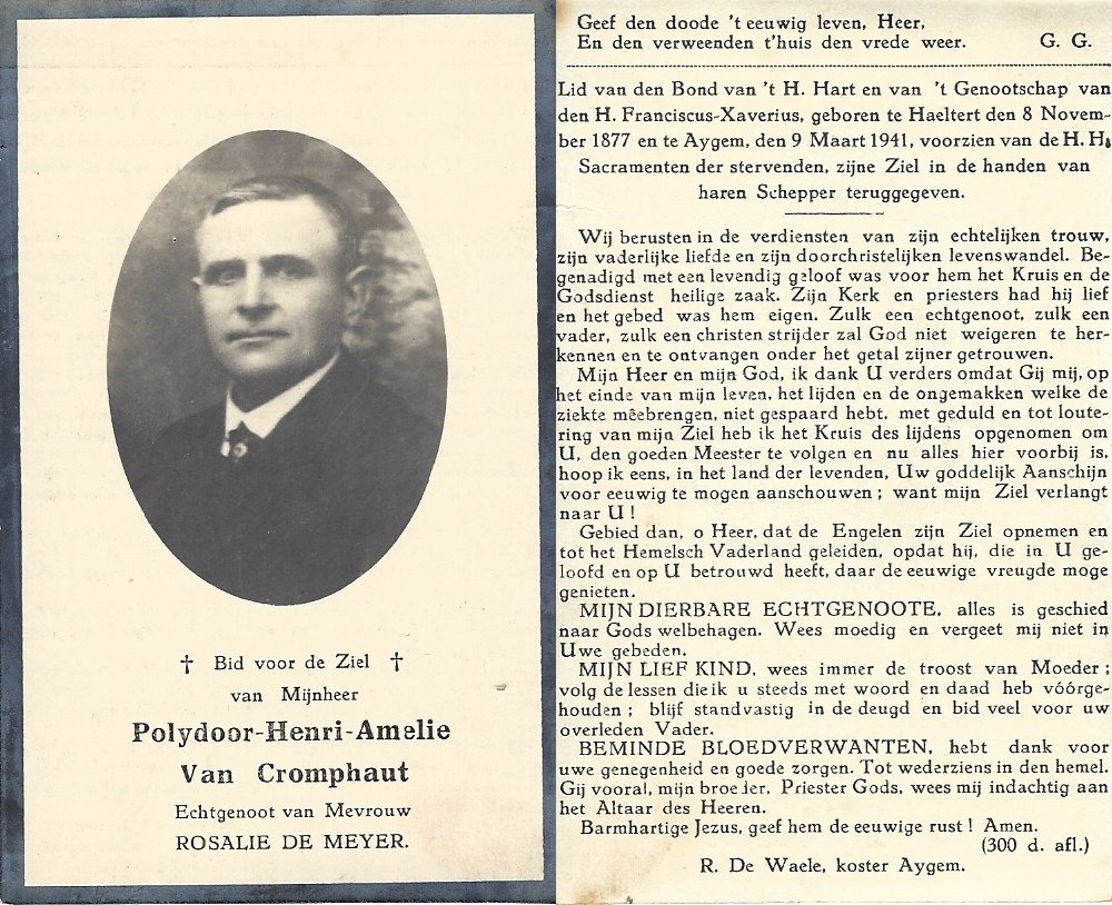 Van Cromphaut Polydoor Henri AmelieDe Meyer RosalieHaaltert08/11/1877Aaigem09/03/1941