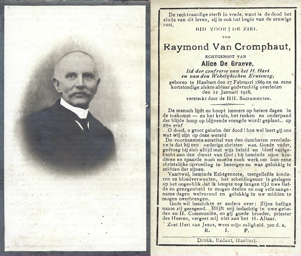 Van Cromphaut RaymondDe Graeve AliceHaaltert27/02/1869Haaltert12/01/1928