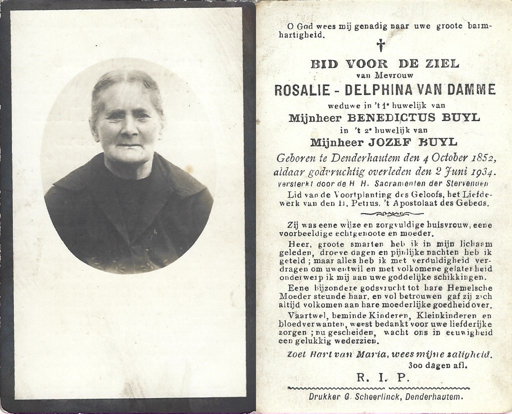 Van Damme Rosalia DelphinaBuyl Benedictus en Buyl JozefDenderhoutem04/10/1852Denderhoutem02/06/1934