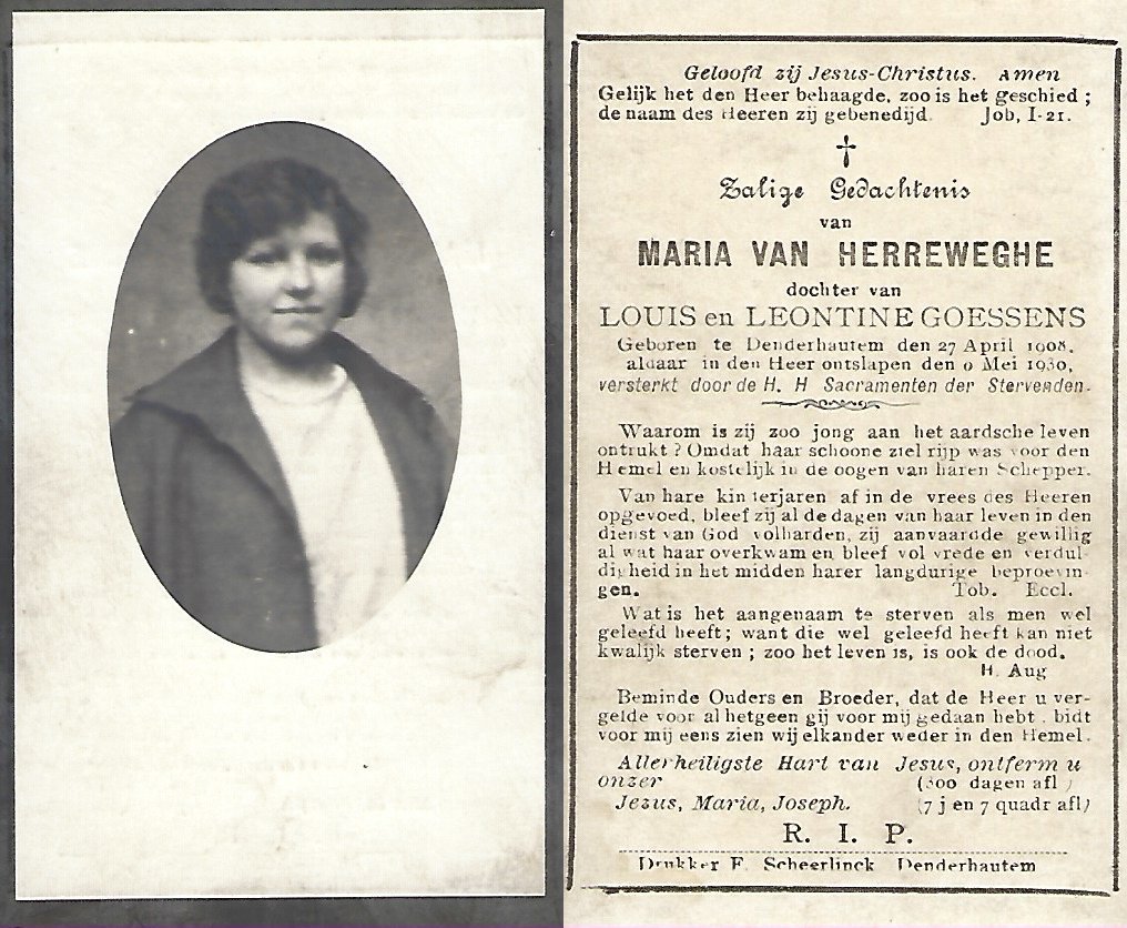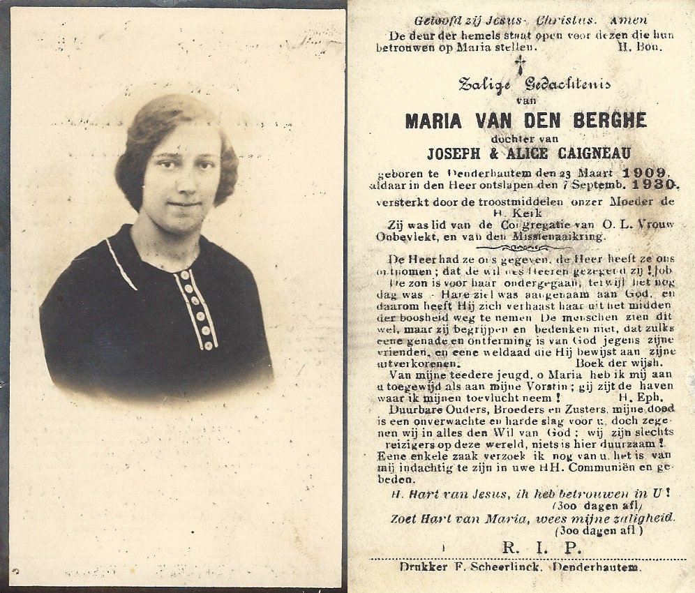 Van Den Berghe MariaDenderhoutem23/03/1909Denderhoutem07/09/1930