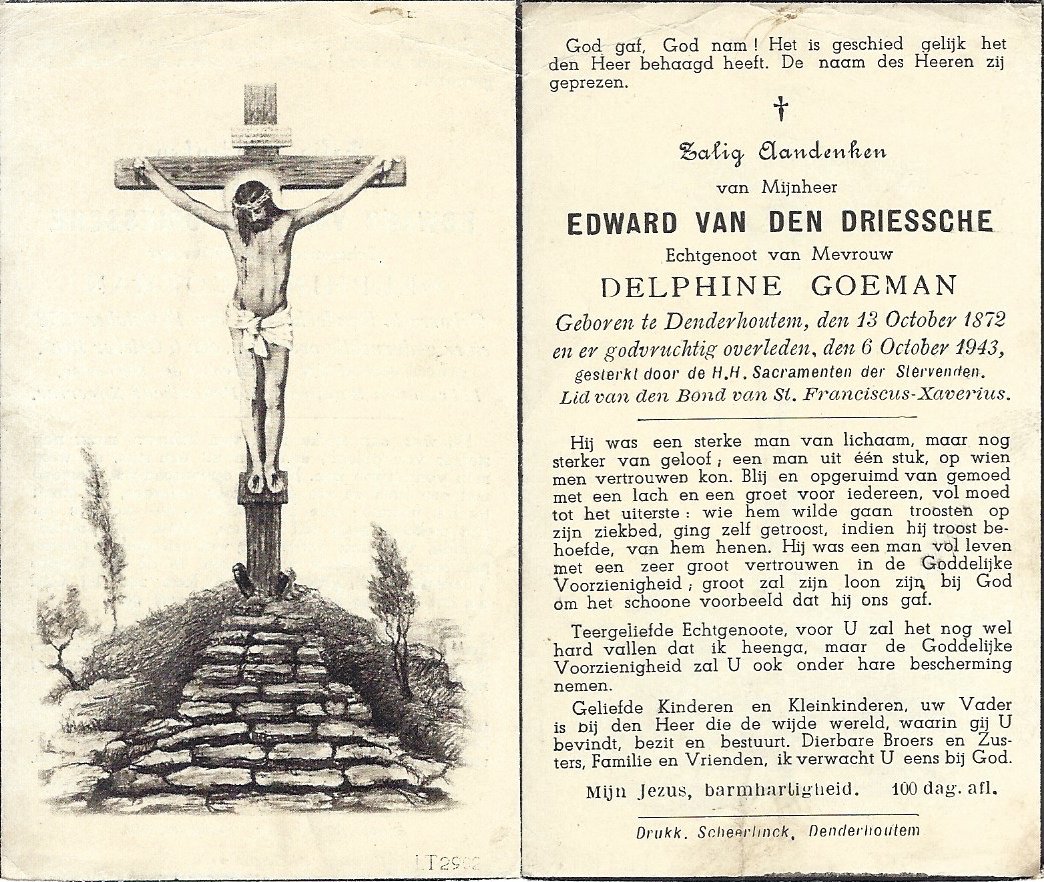 Van Den Driessche EdwardGoeman DelphineDenderhoutem13/10/1872Denderhoutem06/10/1943