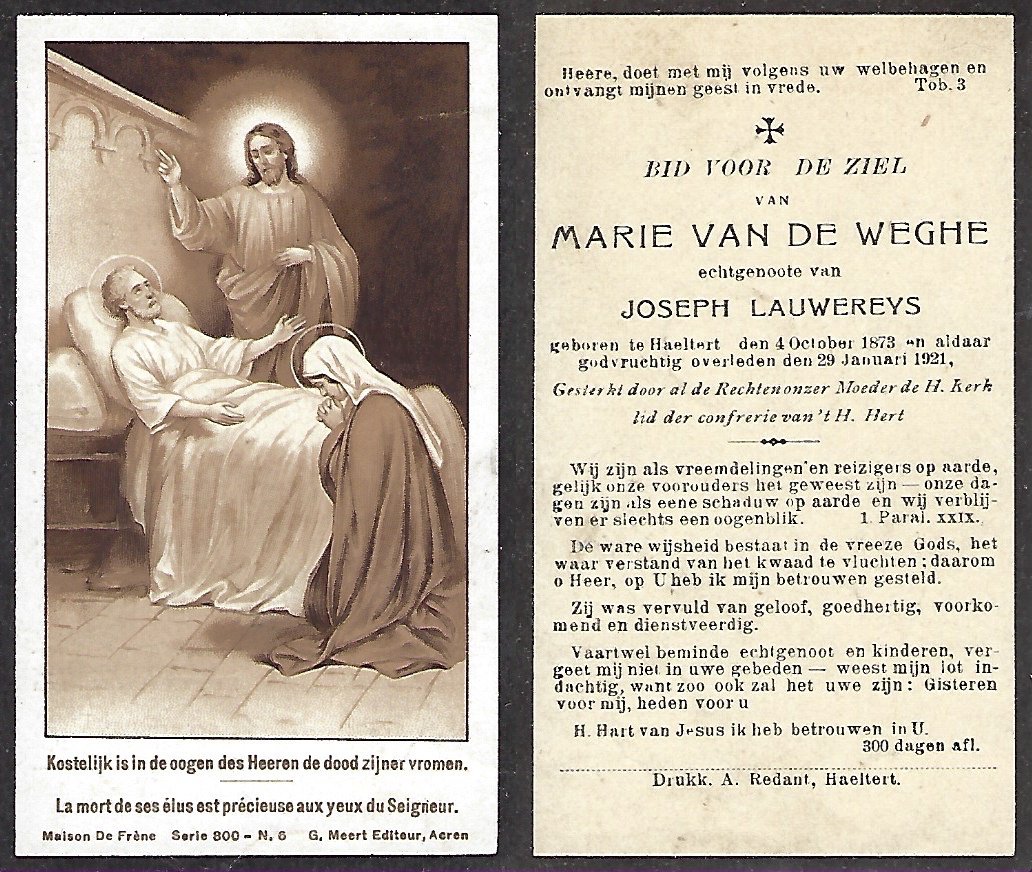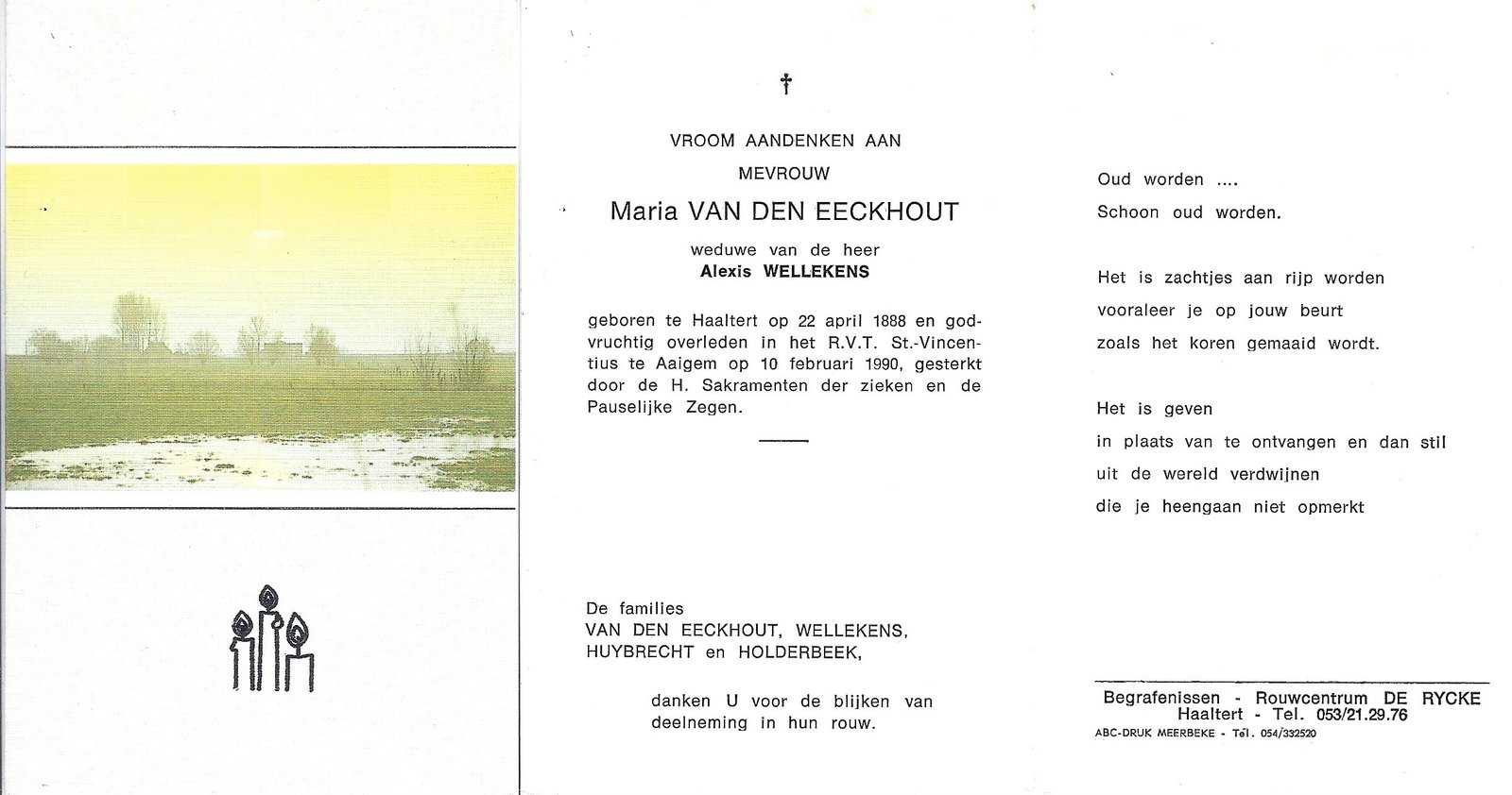 Van Den Eeckhout MariaWellekens AlexisHaaltert22/04/1888Aaigem10/02/1990