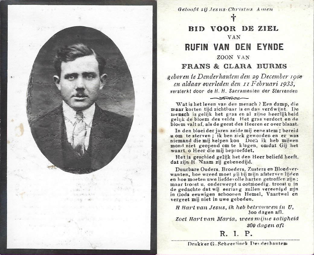 Van Den Eynde RufinDenderhoutem29/12/1900Denderhoutem11/02/1933