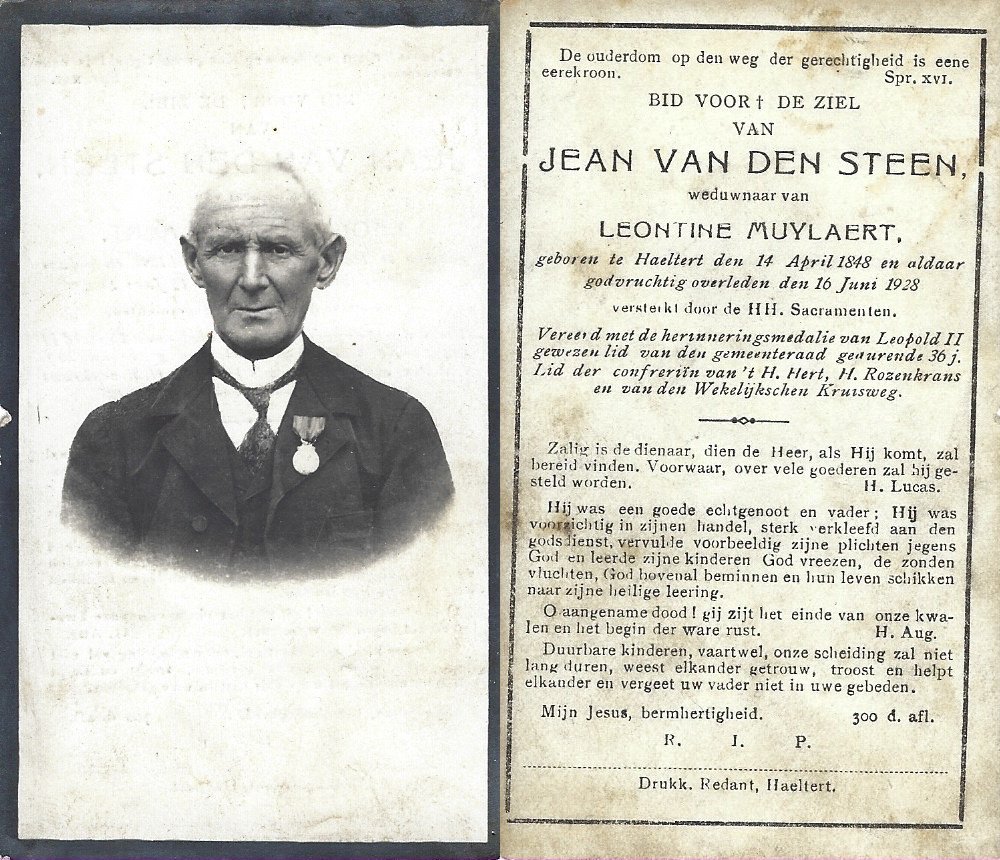 Van Den Steen JeanMuylaert LeontineHaaltert14/04/1848Haaltert16/06/1928