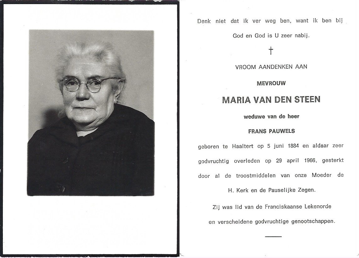 Van Den Steen MariaPauwels FransHaaltert05/06/1884Haaltert29/04/1966