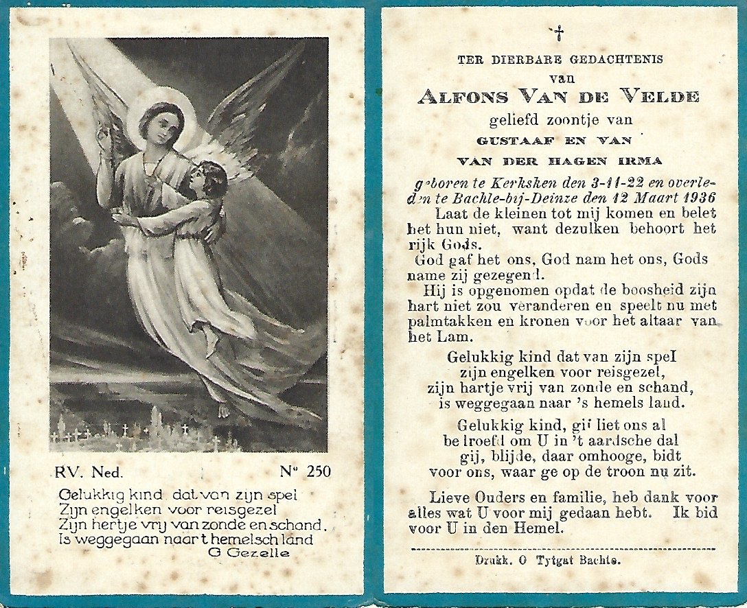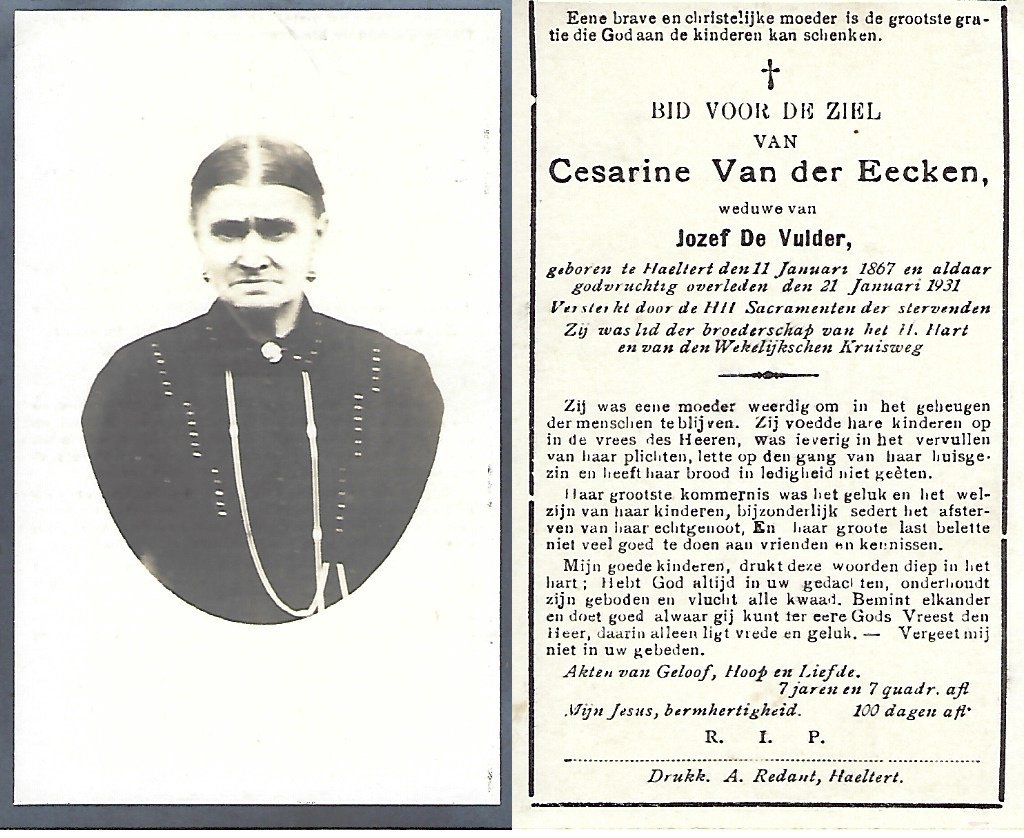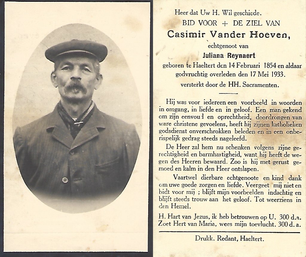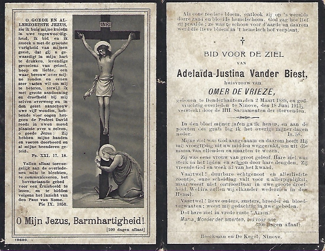 Bidprentjes inwoners beginnend letter V Haaltert – Denderhoutem – Kerksken – Heldergem
