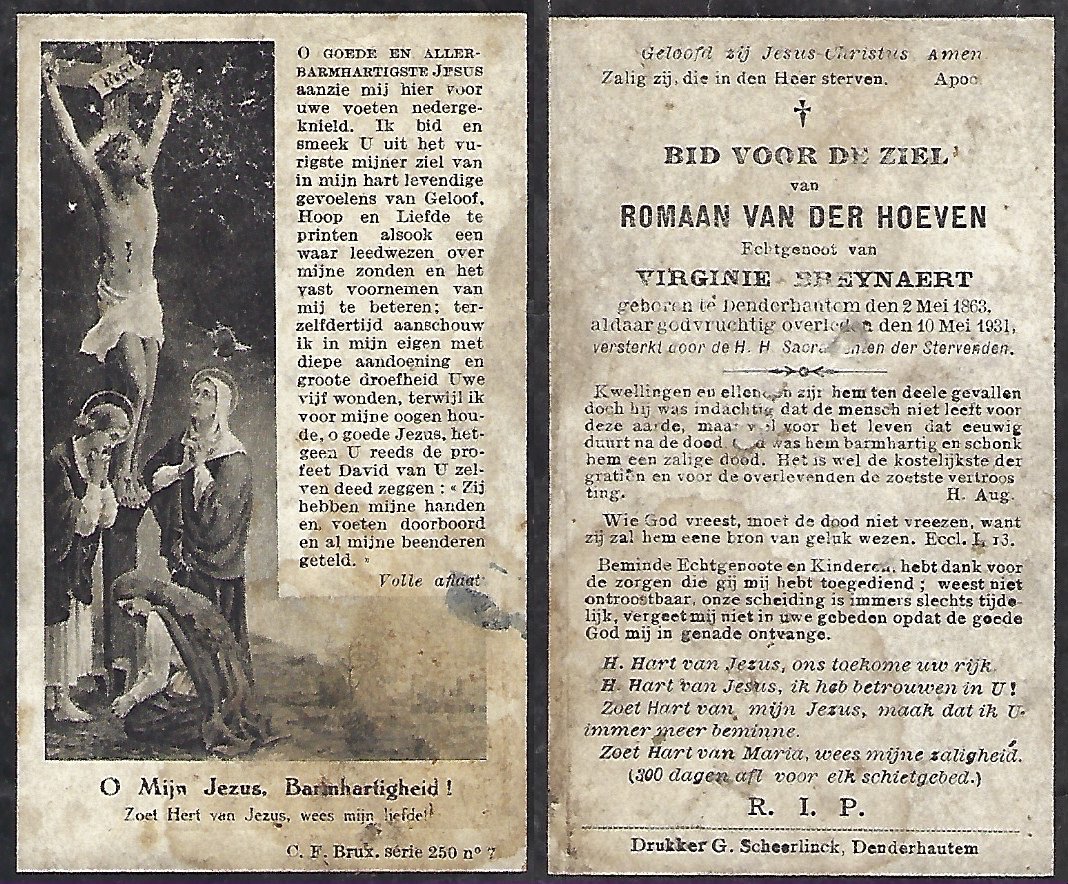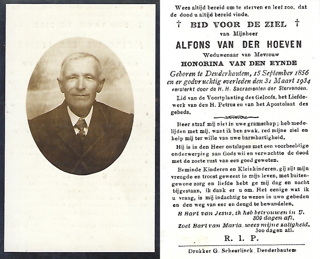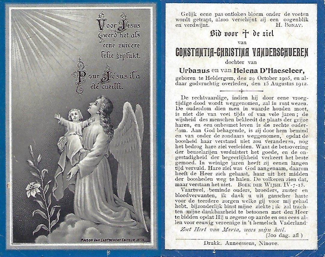 Bidprentjes inwoners beginnend letter V Haaltert – Denderhoutem – Kerksken – Heldergem