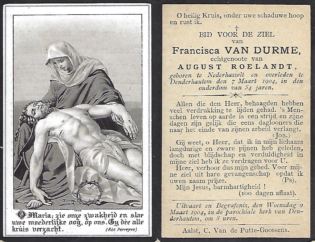 Van Rossen Maria JudocaDenderhoutem18/02/1841Denderhoutem20/09/1908