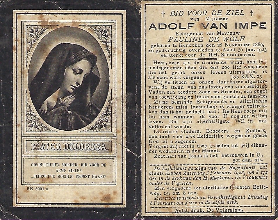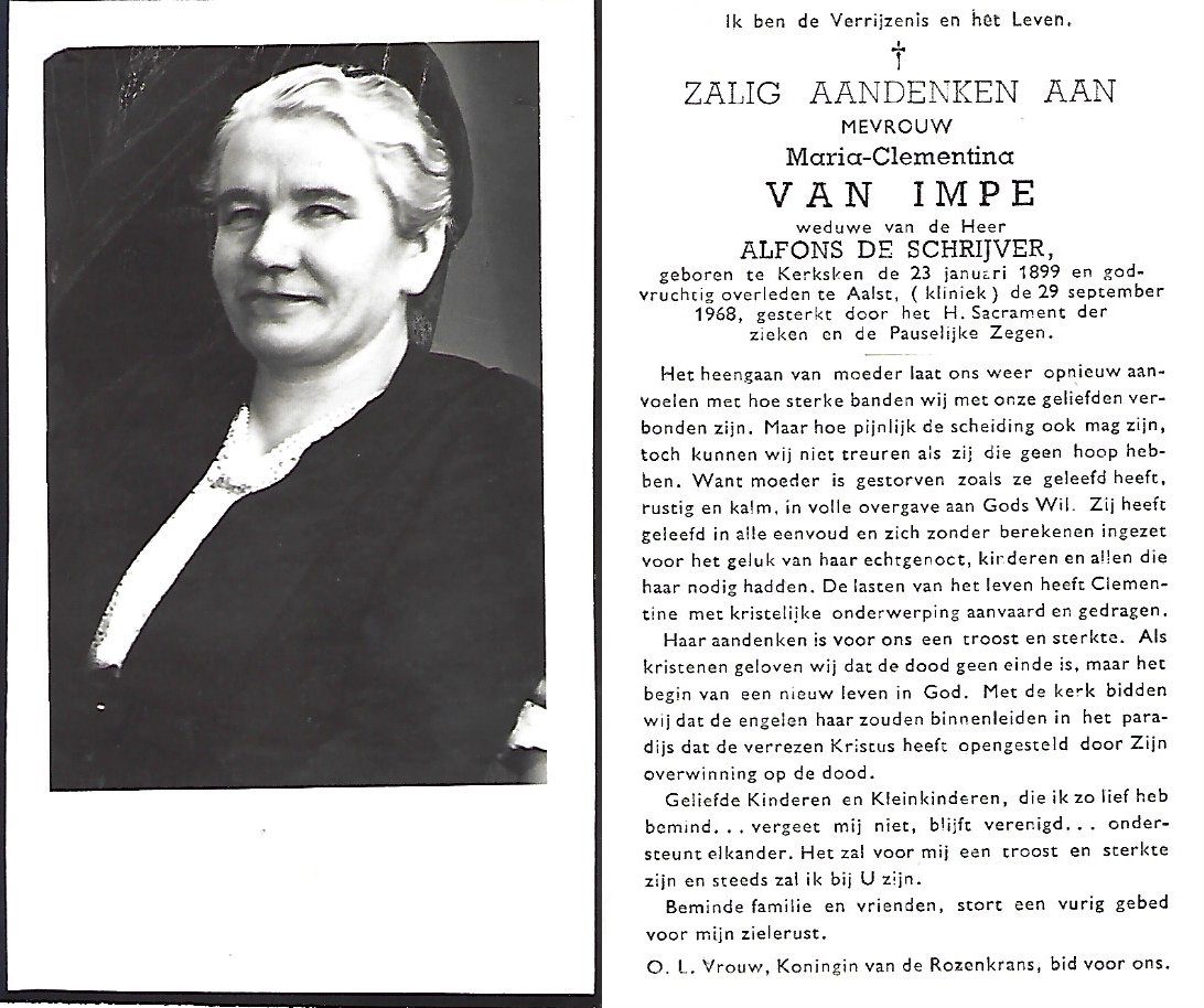 Van Impe Maria ClementinaDe Schrijver AlfonsKerksken23/01/1899Aalst29/09/1968