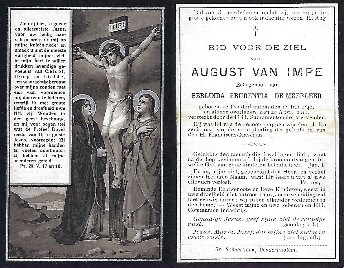 Van Impe AugustDe Meerleer Berlinda PrudentiaDenderhoutem13/07/1849Denderhoutem29/04/1919