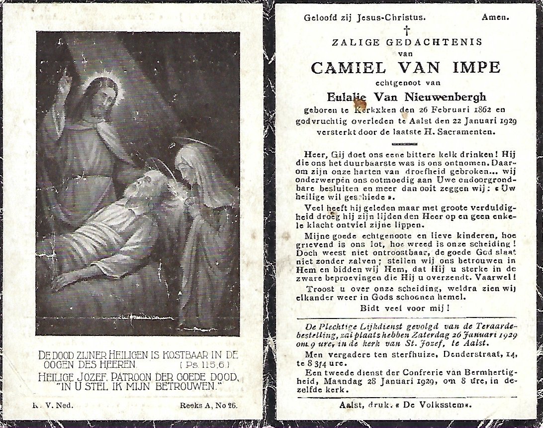 Van Impe CamielVan Nieuwenbergh EulalieKerksken26/02/1862Aalst22/01/1929