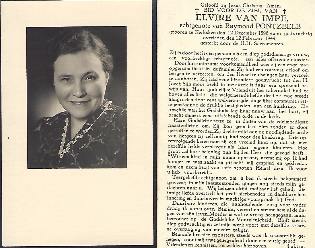 Van Impe ElvirePontzeele RaymondKerksken12/12/1898Kerksken12/02/1949