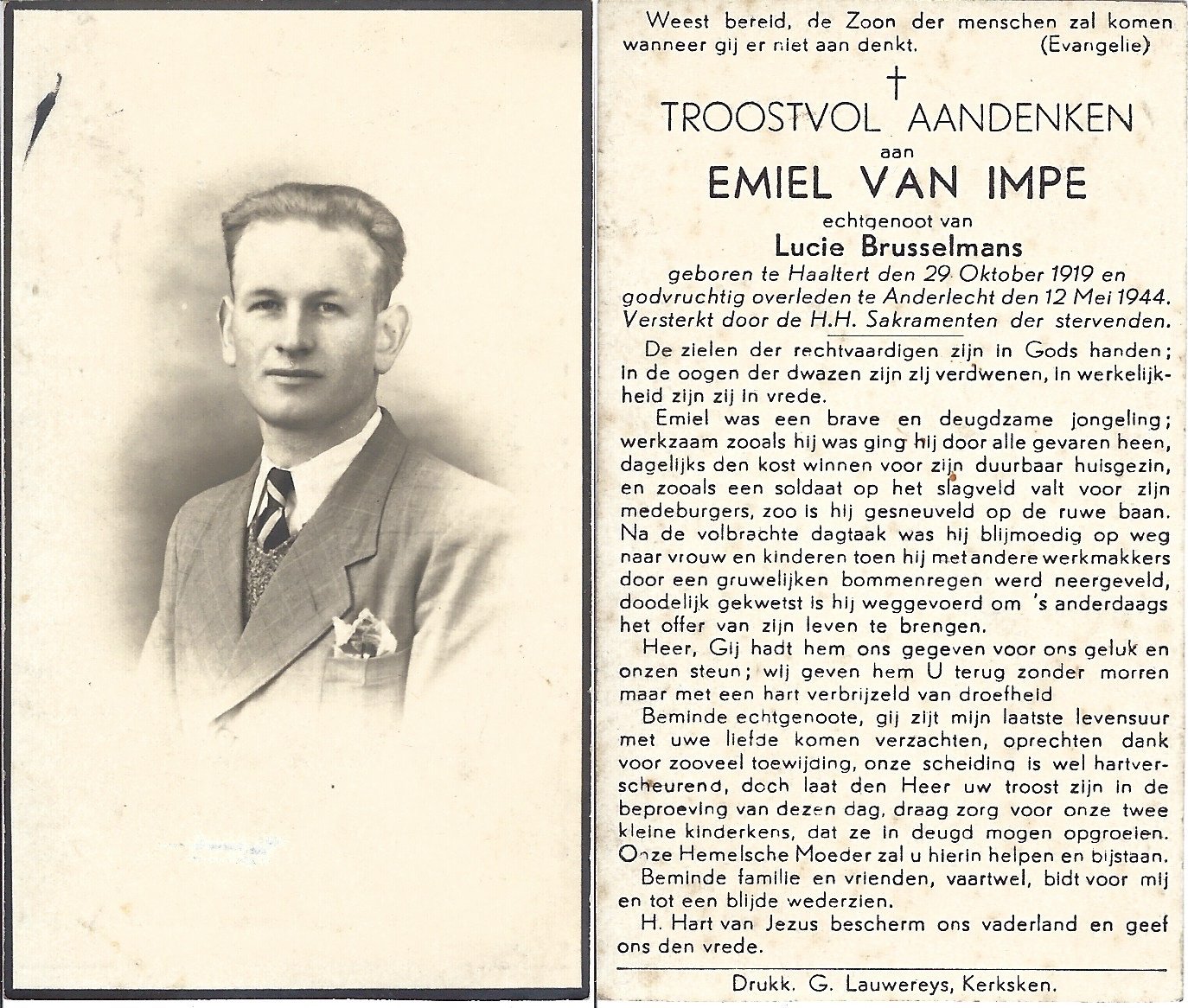 Van Impe EmielBrusselmans LucieHaaltert29/10/1919Anderlecht12/05/1944