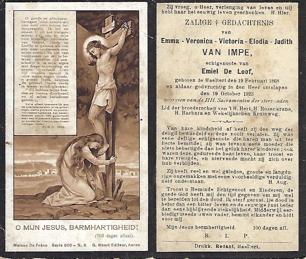 Van Impe Emma Veronica VictoriaDe Loof EmielHaaltert19/02/1868Haaltert19/10/1923